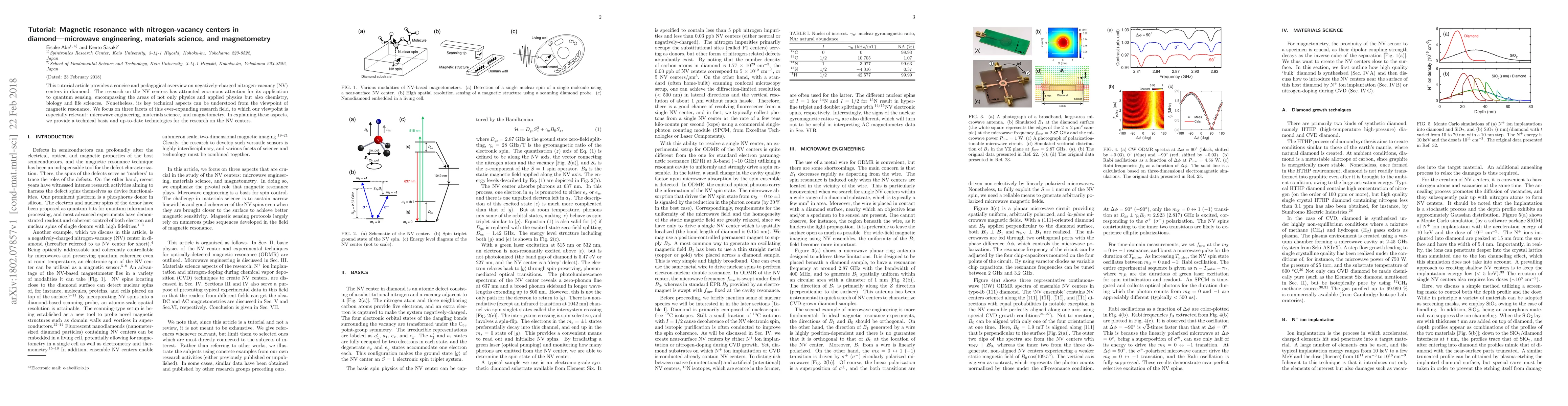 This tutorial offers a comprehensive overview of nitrogen-vacancy (NV) centers in diamond, emphasizing their significance in quantum sensing. It focuses on microwave engineering, materials science, and magnetometry, providing a technical foundation and current technologies for NV center research.