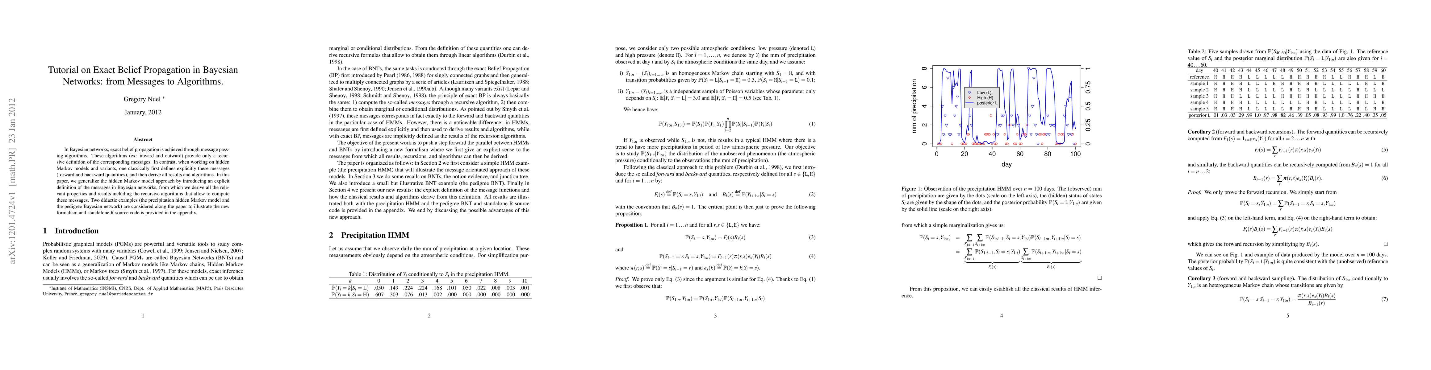 In Bayesian networks, exact belief propagation is achieved through message passing algorithms. These algorithms (ex: inward and outward) provide only a recursive definition of the corresponding messages. In contrast, when working on hidden Markov models and variants, one classically first defines explicitly these messages (forward and backward quantities), and then derive all results and algorithms. In this paper, we generalize the hidden Markov model approach by introducing an explicit definition of the messages in Bayesian networks, from which we derive all the relevant properties and results including the recursive algorithms that allow to compute these messages. Two didactic examples (the precipitation hidden Markov model and the pedigree Bayesian network) are considered along the paper to illustrate the new formalism and standalone R source code is provided in the appendix.