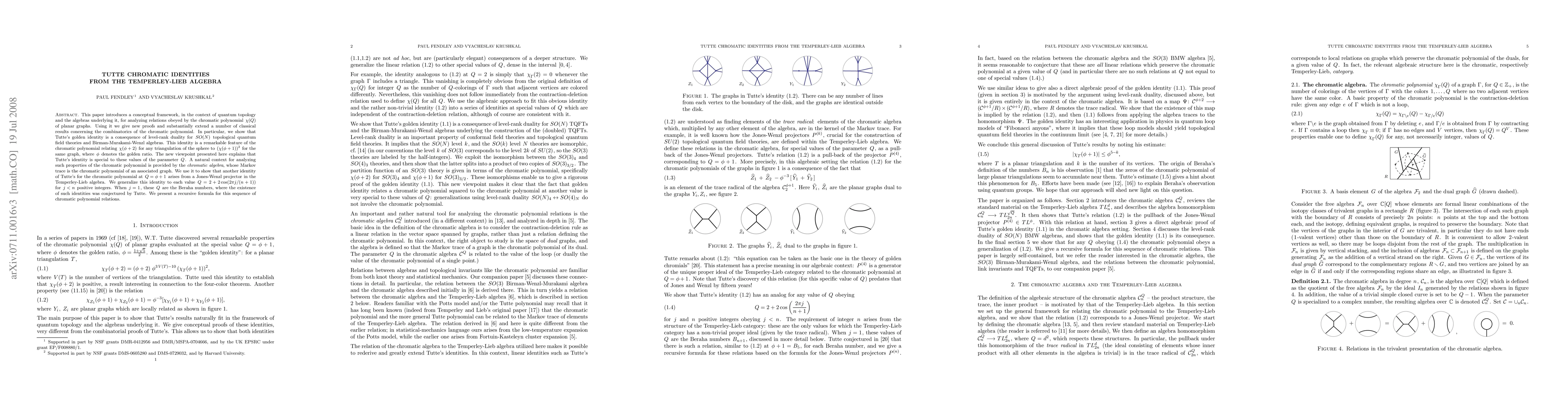 This paper introduces a conceptual framework, in the context of quantum topology and the algebras underlying it, for analyzing relations obeyed by the chromatic polynomial \chi(Q) of planar graphs. Using it we give new proofs and substantially extend a number of classical results concerning the combinatorics of the chromatic polynomial. In particular, we show that Tutte's golden identity is a consequence of level-rank duality for SO(N) topological quantum field theories and Birman-Murakami-Wenzl algebras. This identity is a remarkable feature of the chromatic polynomial relating \chi({\phi+2}) for any triangulation of the sphere to (\chi({\phi+1}))^2 for the same graph, where \phi denotes the golden ratio. The new viewpoint presented here explains that Tutte's identity is special to these values of the parameter Q. A natural context for analyzing such properties of the chromatic polynomial is provided by the {\em chromatic algebra}, whose Markov trace is the chromatic polynomial of an associated graph. We use it to show that another identity of Tutte's for the chromatic polynomial at Q={\phi}+1 arises from a Jones-Wenzl projector in the Temperley-Lieb algebra. We generalize this identity to each value Q= 2+2\cos(2\pi j/(n+1)) for j< n positive integers. When j=1, these Q are the Beraha numbers, where the existence of such identities was conjectured by Tutte. We present a recursive formula for this sequence of chromatic polynomial relations.