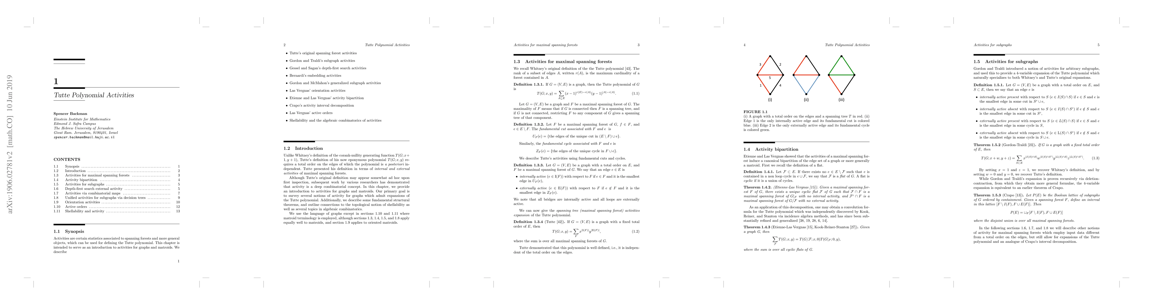 This paper surveys the concept of activity in the context of Tutte polynomials, emphasizing its deep combinatorial significance. It introduces various notions of activity for graphs and explores connections to algebraic combinatorics, topological shellability, and structural theorems.