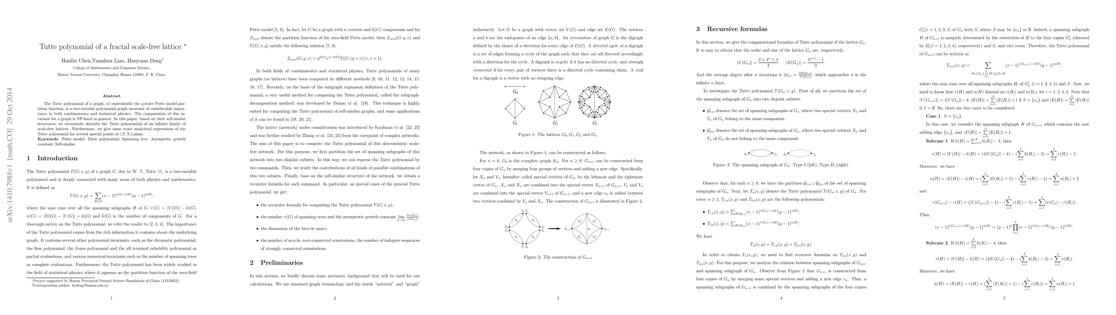 This paper recursively describes the Tutte polynomials of a fractal scale-free lattice based on their self-similar structures, and provides exact analytical expressions for the Tutte polynomial at specific points in the $(X,Y)$-plane. The study is significant for both combinatorics and statistical physics.