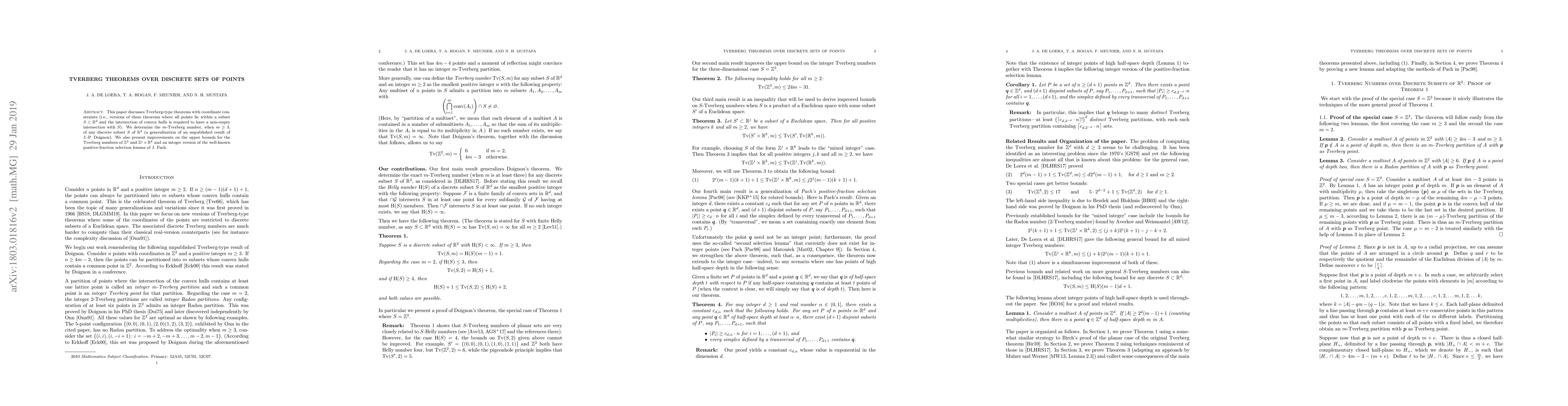 This paper discusses Tverberg-type theorems with coordinate constraints (i.e., versions of these theorems where all points lie within a subset $S \subset \mathbb{R}^d$ and the intersection of convex hulls is required to have a non-empty intersection with $S$). We determine the $m$-Tverberg number, when $m \geq 3$, of any discrete subset $S$ of $\mathbb{R}^2$ (a generalization of an unpublished result of J.-P. Doignon). We also present improvements on the upper bounds for the Tverberg numbers of $\mathbb{Z}^3$ and $\mathbb{Z}^j \times \mathbb{R}^k$ and an integer version of the well-known positive-fraction selection lemma of J. Pach.