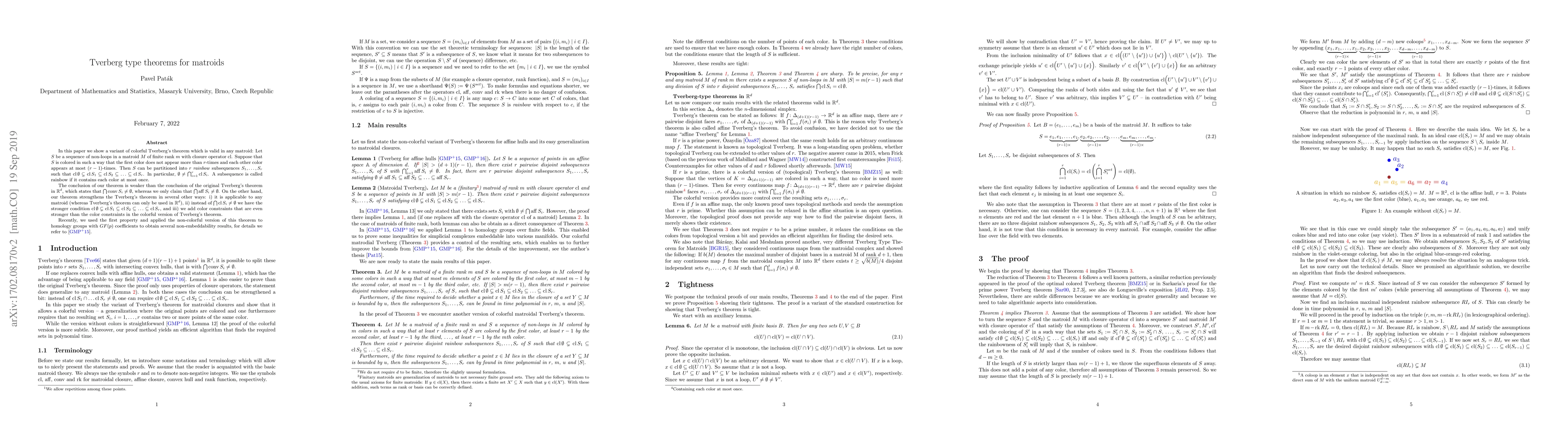 In this paper we show a variant of colorful Tverberg's theorem which is valid in any matroid: Let $S$ be a sequence of non-loops in a matroid $M$ of finite rank $m$ with closure operator cl. Suppose that $S$ is colored in such a way that the first color does not appear more than $r$-times and each other color appears at most $(r-1)$-times. Then $S$ can be partitioned into $r$ rainbow subsequences $S_1,\ldots, S_r$ such that $cl\,\emptyset\subsetneq cl\,S_1\subseteq cl\, S_2\subseteq \ldots \subseteq cl\,S_r$. In particular, $\emptyset\neq \bigcap_{i=1}^r cl\,S_i$. A subsequence is called rainbow if it contains each color at most once. The conclusion of our theorem is weaker than the conclusion of the original Tverberg's theorem in $\mathbb R^d$, which states that $\bigcap conv\,S_i\neq \emptyset$, whereas we only claim that $\bigcap aff\,S_i\neq \emptyset$. On the other hand, our theorem strengthens the Tverberg's theorem in several other ways: 1) it is applicable to any matroid (whereas Tverberg's theorem can only be used in $\mathbb R^d$), 2) instead of $\bigcap cl\,S_i\neq \emptyset$ we have the stronger condition $cl\,\emptyset\subsetneq cl\,S_1\subseteq cl\,S_2\subseteq \ldots \subseteq cl\,S_r$, and 3) we add a color constraints that are even stronger than the color constraints in the colorful version of Tverberg's theorem. Recently, the author together with Goaoc, Mabillard, Pat\'akov\'a, Tancer and Wagner used the first property and applied the non-colorful version of this theorem to homology groups with $GF(p)$ coefficients to obtain several non-embeddability results, for details we refer to arXiv:1610.09063.