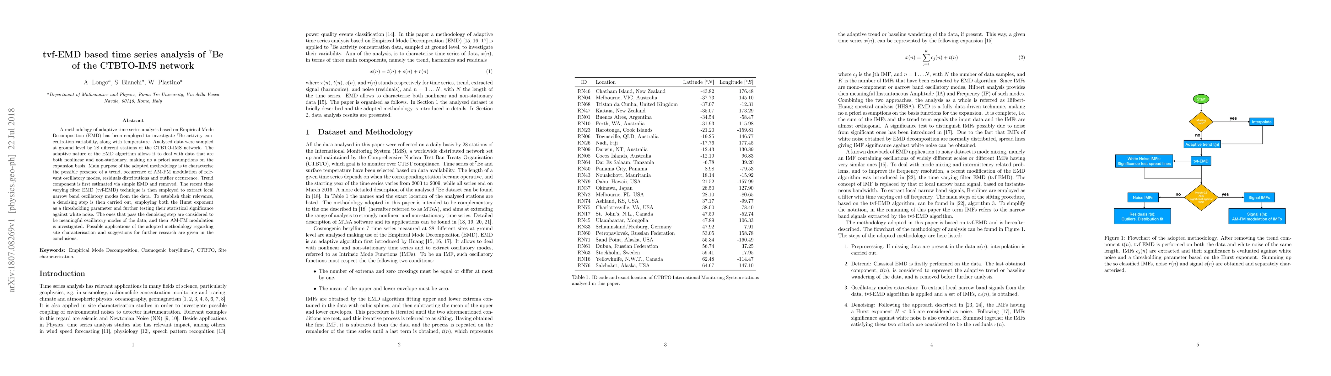 Researchers used a new time series analysis method to study $^{7}$Be activity concentrations in the CTBTO-IMS network, finding potential oscillatory modes that may indicate site characteristics.