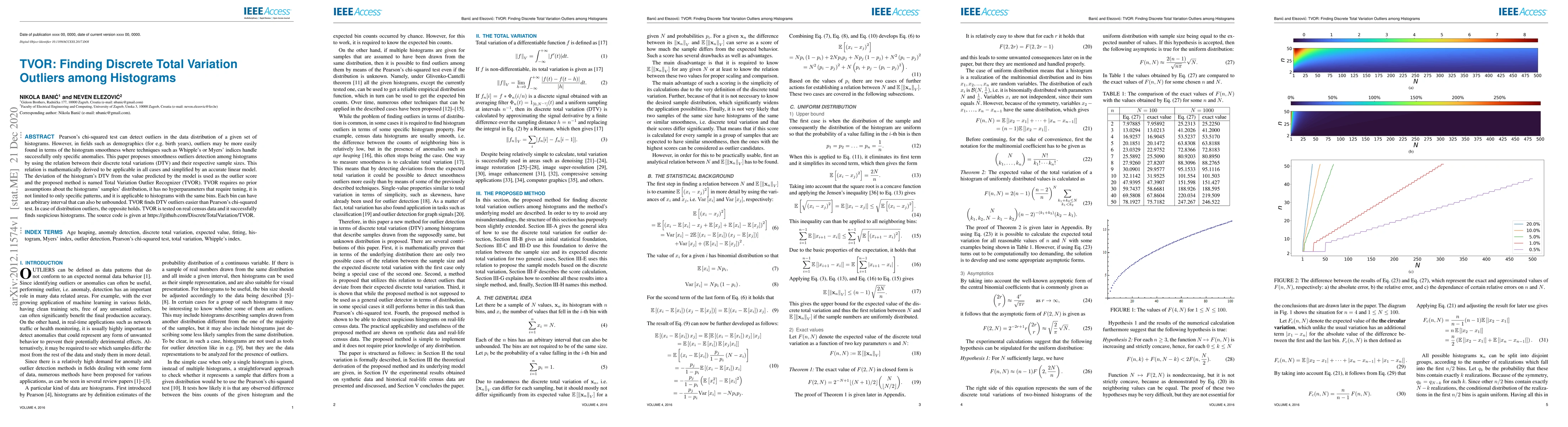 Pearson's chi-squared test can detect outliers in the data distribution of a given set of histograms. However, in fields such as demographics (for e.g. birth years), outliers may be more easily found in terms of the histogram smoothness where techniques such as Whipple's or Myers' indices handle successfully only specific anomalies. This paper proposes smoothness outliers detection among histograms by using the relation between their discrete total variations (DTV) and their respective sample sizes. This relation is mathematically derived to be applicable in all cases and simplified by an accurate linear model. The deviation of the histogram's DTV from the value predicted by the model is used as the outlier score and the proposed method is named Total Variation Outlier Recognizer (TVOR). TVOR requires no prior assumptions about the histograms' samples' distribution, it has no hyperparameters that require tuning, it is not limited to only specific patterns, and it is applicable to histograms with the same bins. Each bin can have an arbitrary interval that can also be unbounded. TVOR finds DTV outliers easier than Pearson's chi-squared test. In case of distribution outliers, the opposite holds. TVOR is tested on real census data and it successfully finds suspicious histograms. The source code is given at https://github.com/DiscreteTotalVariation/TVOR.