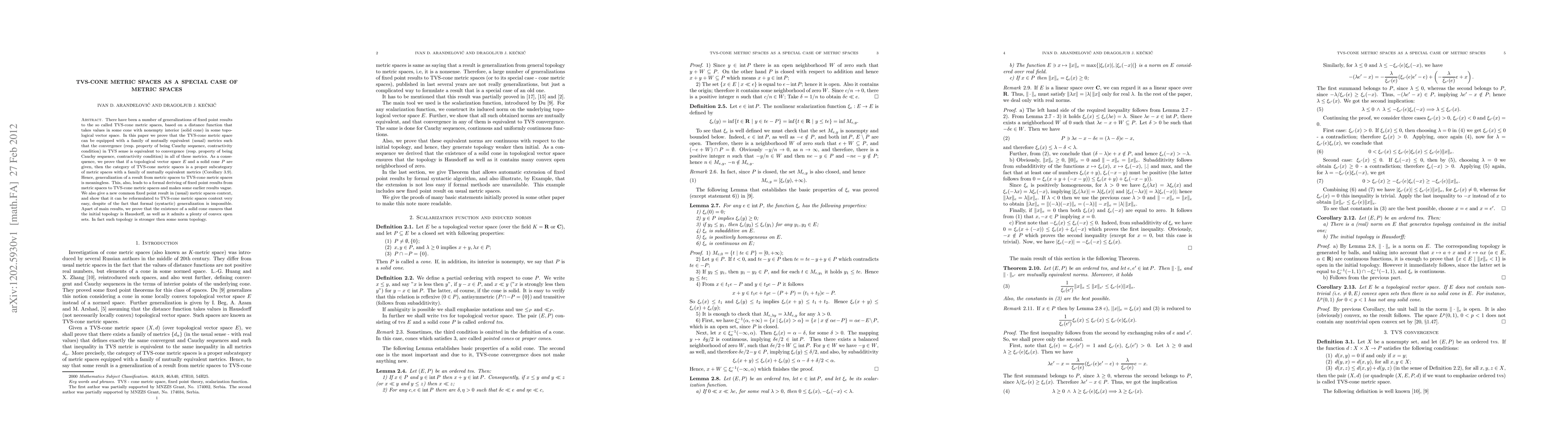 There have been a number of generalizations of fixed point results to the so called TVS-cone metric spaces, based on a distance function that takes values in some cone with nonempty interior (solid cone) in some topological vector space. In this paper we prove that the TVS-cone metric space can be equipped with a family of mutually equivalent (usual) metrics such that the convergence (resp. property of being Cauchy sequence, contractivity condition) in TVS sense is equivalent to convergence (resp. property of being Cauchy sequence, contractivity condition) in all of these metrics. As a consequence, we prove that if a topological vector space $E$ and a solid cone $P$ are given, then the category of TVS-cone metric spaces is a proper subcategory of metric spaces with a family of mutually equivalent metrics (Corollary 3.9). Hence, generalization of a result from metric spaces to TVS-cone metric spaces is meaningless. This, also, leads to a formal deriving of fixed point results from metric spaces to TVS-cone metric spaces and makes some earlier results vague. We also give a new common fixed point result in (usual) metric spaces context, and show that it can be reformulated to TVS-cone metric spaces context very easy, despite of the fact that formal (syntactic) generalization is impossible. Apart of main results, we prove that the existence of a solid cone ensures that the initial topology is Hausdorff, as well as it admits a plenty of convex open sets. In fact such topology is stronger then some norm topology.