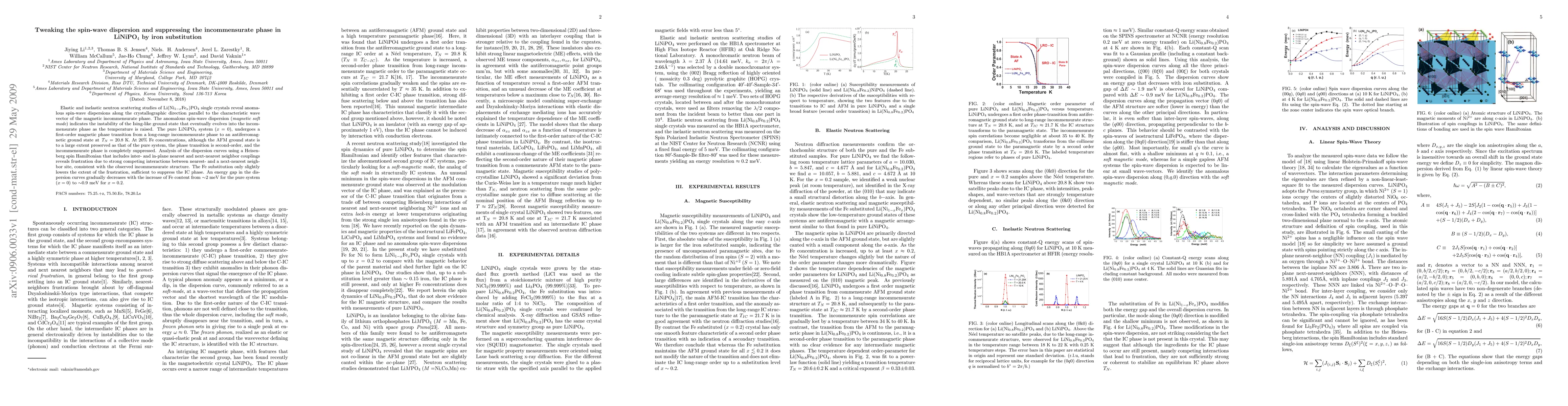 Elastic and inelastic neutron scattering studies of Li(Ni$_{1-x}$Fe$_{x}$)PO$_4$ single crystals reveal anomalous spin-wave dispersions along the crystallographic direction parallel to the characteristic wave vector of the magnetic incommensurate phase. The anomalous spin-wave dispersion ({\it magnetic soft mode}) indicates the instability of the Ising-like ground state that eventually evolves into the incommensurate phase as the temperature is raised. The pure LiNiPO$_4$ system ($x=0$), undergoes a first-order magnetic phase transition from a long-range incommensurate phase to an antiferromagnetic ground state at {\it T}$_N$ = 20.8 K. At 20% Fe concentrations, although the AFM ground state is to a large extent preserved as that of the pure system, the phase transition is second-order, and the incommensurate phase is completely suppressed. Analysis of the dispersion curves using a Heisenberg spin Hamiltonian that includes inter- and in-plane nearest and next-nearest neighbor couplings reveals frustration due to strong competing interactions between nearest- and a next-nearest neighbor site, consistent with the observed incommensurate structure. The Fe substitution only slightly lowers the extent of the frustration, sufficient to suppress the IC phase. An energy gap in the dispersion curves gradually decreases with the increase of Fe content from $\sim$2 meV for the pure system ($x=0$) to $\sim$0.9 meV for $x=0.2$.