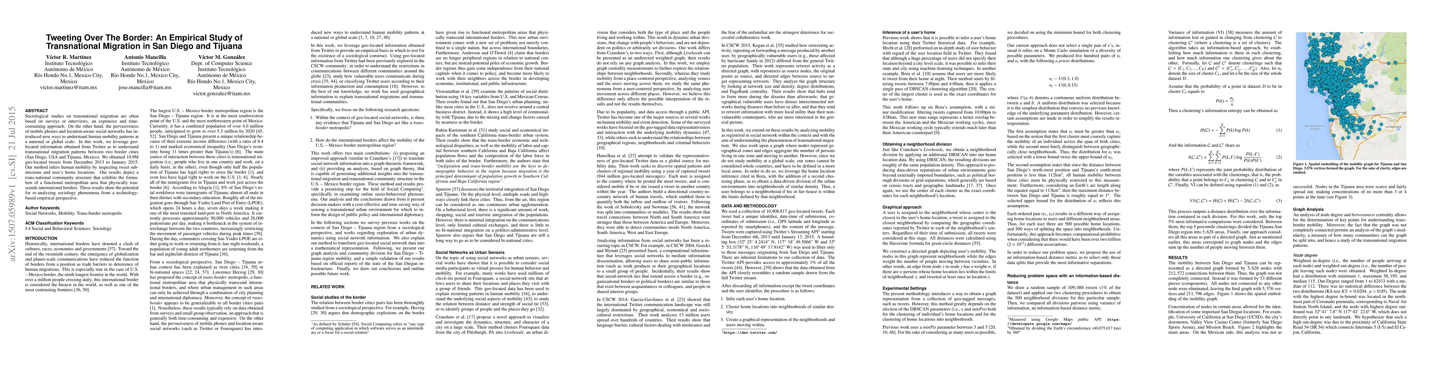 This study uses Twitter data to analyze transnational migration patterns between San Diego and Tijuana, revealing a functional metropolitan area that transcends international borders. It demonstrates the potential for sociology research using technology-based empirical perspectives.