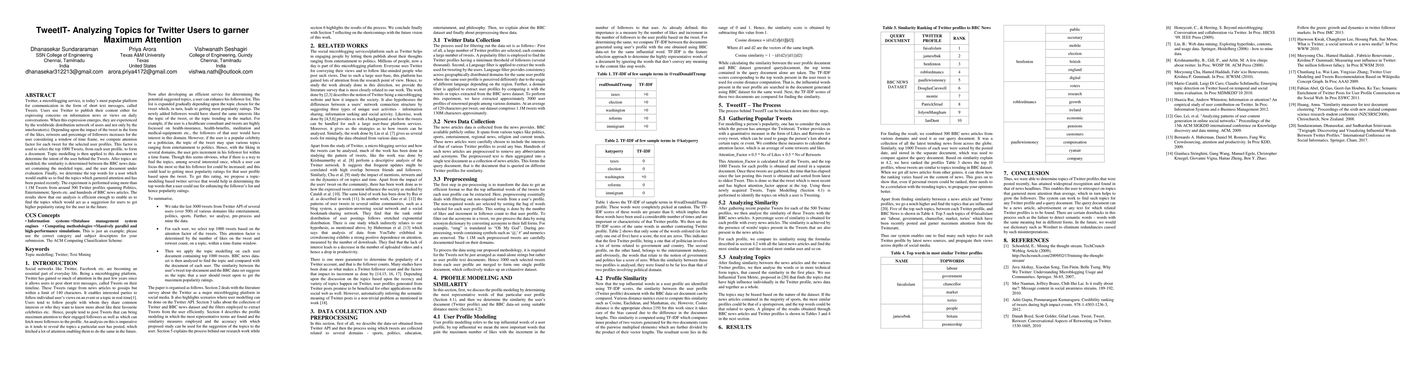 This research paper investigates how to identify topics on Twitter that garner maximum attention by analyzing over 1.1 million tweets from 500 user profiles. It uses topic modeling to determine user intent and compares these topics with BBC news data to suggest which topics are most likely to increase a user's popularity. The findings indicate that the method can effectively recommend topics for higher engagement.