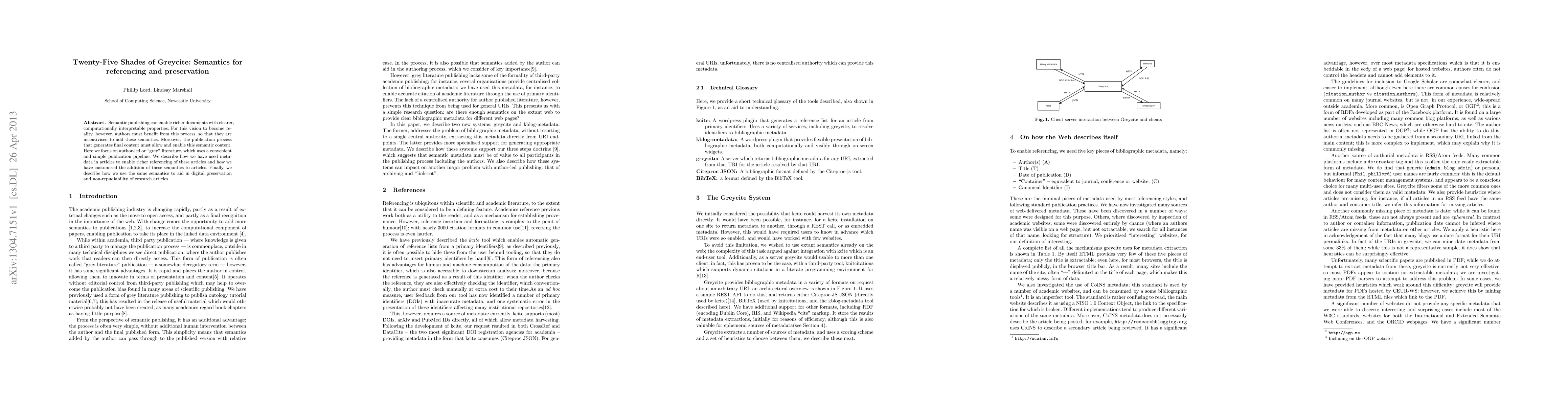 Semantic publishing can enable richer documents with clearer, computationally interpretable properties. For this vision to become reality, however, authors must benefit from this process, so that they are incentivised to add these semantics. Moreover, the publication process that generates final content must allow and enable this semantic content. Here we focus on author-led or "grey" literature, which uses a convenient and simple publication pipeline. We describe how we have used metadata in articles to enable richer referencing of these articles and how we have customised the addition of these semantics to articles. Finally, we describe how we use the same semantics to aid in digital preservation and non-repudiability of research articles.