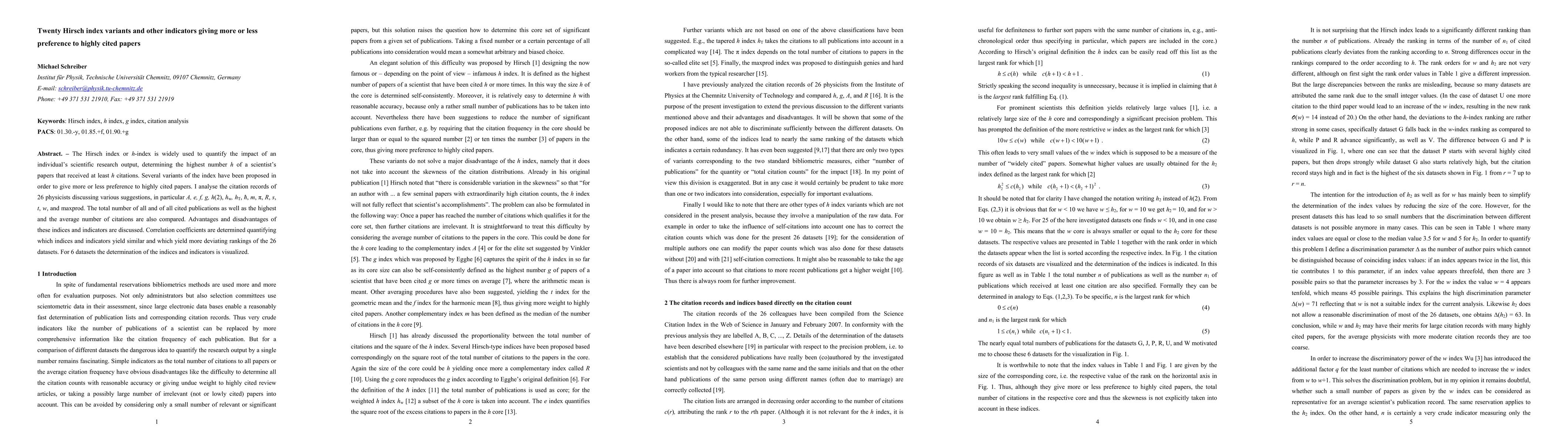 This paper analyzes various Hirsch index variants and other citation metrics to assess their preference for highly cited papers, comparing 26 physicists' datasets. It discusses the advantages and disadvantages of indices like h(2), h_w, and maxprod, and quantifies their correlation to determine which yield similar rankings.