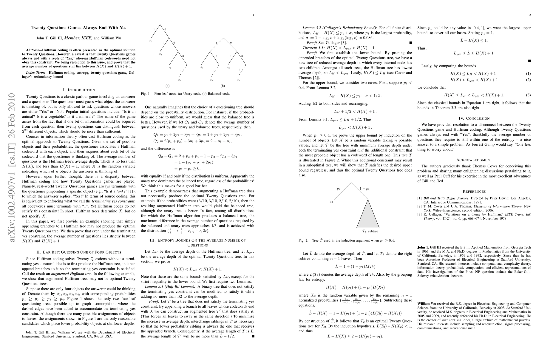 This paper resolves the discrepancy between Huffman coding and the game of Twenty Questions by demonstrating that a modified version of Huffman coding can ensure that games always end with a "Yes," while still maintaining an average number of questions between H(X) and H(X)+1.