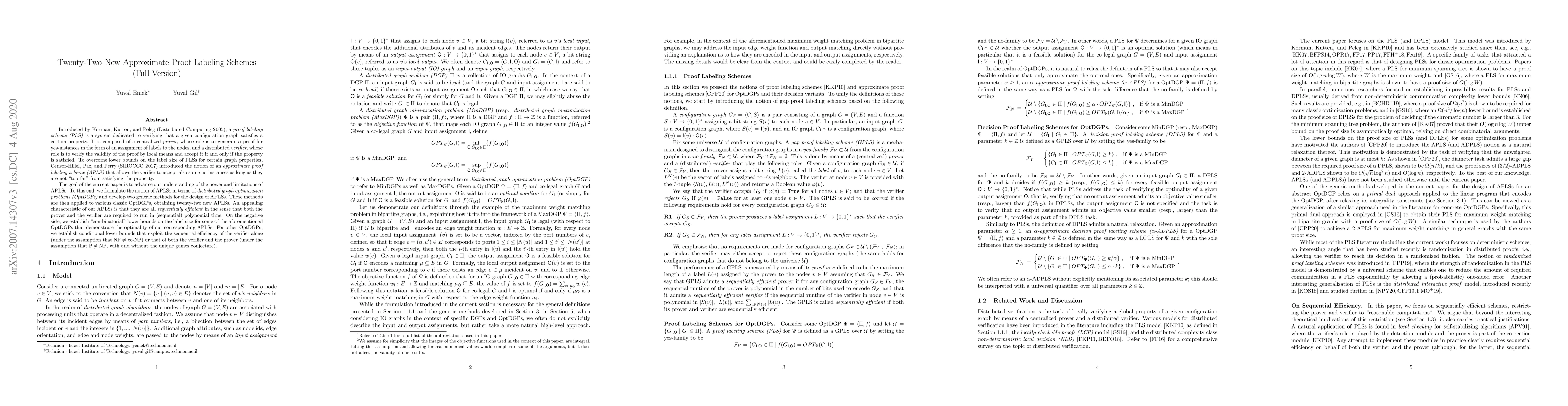 This paper introduces twenty-two new approximate proof labeling schemes (APLS) designed to verify graph properties while allowing some false positives, thereby reducing label size compared to traditional proof labeling schemes (PLS). The proposed APLSs aim to balance verification efficiency with acceptable error rates.