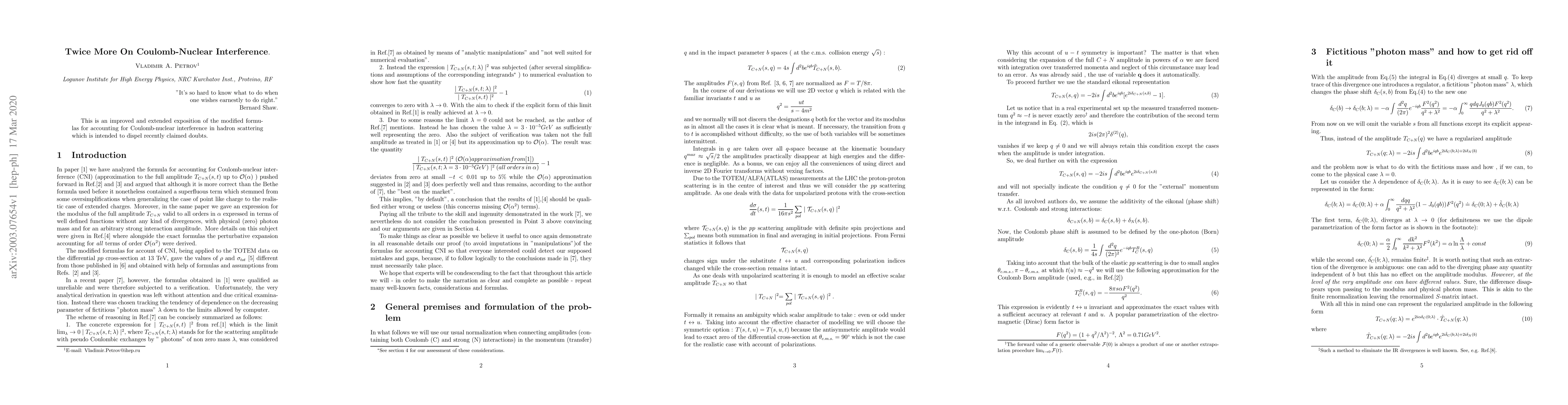 This paper refines and expands upon the modified formulas for Coulomb-nuclear interference in hadron scattering, aiming to address and refute recent skepticism regarding these calculations.