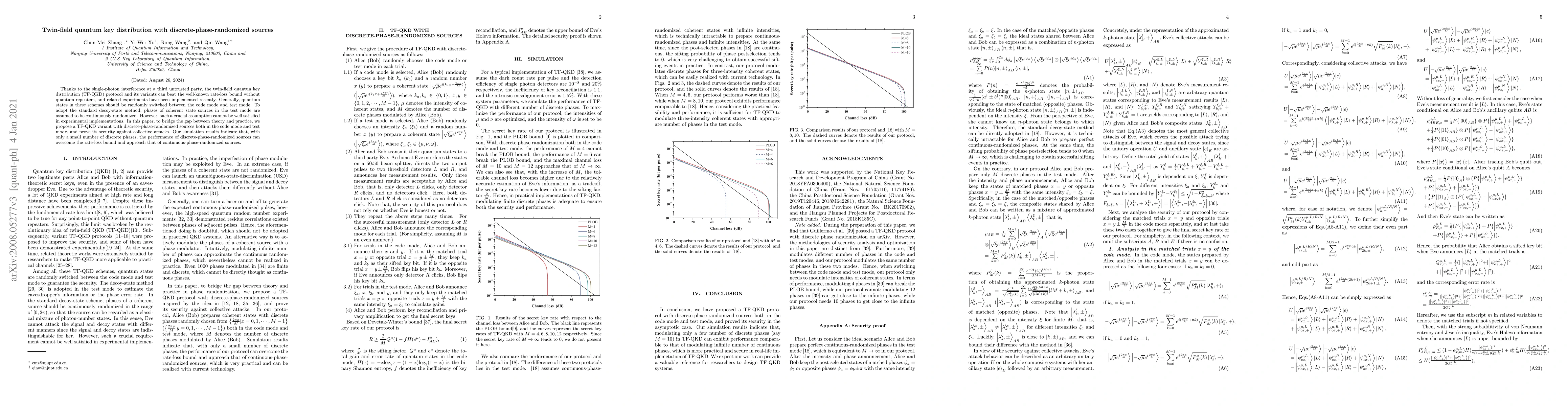 Thanks to the single-photon interference at a third untrusted party, the twin-field quantun key distribution (TF-QKD) protocol and its variants can beat the well-known rate-loss bound without quantum repeaters, and related experiments have been implemented recently. Generally, quantum states in these schemes should be randomly switched between the code mode and test mode. To adopt the standard decoy-state method, phases of coherent state sources in the test mode are assumed to be continuously randomized. However, such a crucial assumption cannot be well satisfied in experimental implementations. In this paper, to bridge the gap between theory and practice, we propose a TF-QKD variant with discrete-phase-randomized sources both in the code mode and test mode, and prove its security against collective attacks. Our simulation results indicate that, with only a small number of discrete phases, the performance of discrete-phase-randomized sources can overcome the rate-loss bound and approach that of continuous-phase-randomized sources.
