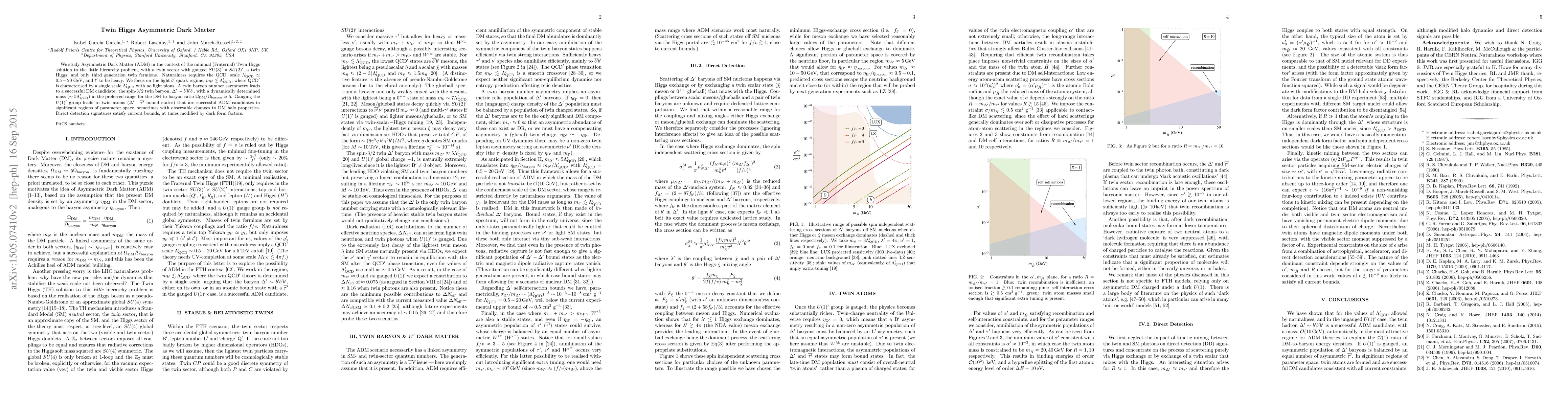 We study Asymmetric Dark Matter (ADM) in the context of the minimal (Fraternal) Twin Higgs solution to the little hierarchy problem, with a twin sector with gauged $SU(3)' \times SU(2)'$, a twin Higgs, and only third generation twin fermions. Naturalness requires the QCD$^\prime$ scale $\Lambda'_{\rm QCD} \simeq 0.5 - 20 \ {\rm GeV}$, and $t'$ to be heavy. We focus on the light $b'$ quark regime, $m_{b'} \lesssim \Lambda'_{\rm QCD}$, where QCD$^\prime$ is characterised by a single scale $\Lambda'_{\rm QCD}$ with no light pions. A twin baryon number asymmetry leads to a successful DM candidate: the spin-3/2 twin baryon, $\Delta' \sim b'b'b'$, with a dynamically determined mass ($\sim 5 \Lambda'_{\rm QCD}$) in the preferred range for the DM-to-baryon ratio $\Omega_{\rm DM}/\Omega_{\rm baryon} \simeq 5$. Gauging the $U(1)'$ group leads to twin atoms ($\Delta'$ - $\bar {\tau'}$ bound states) that are successful ADM candidates in significant regions of parameter space, sometimes with observable changes to DM halo properties. Direct detection signatures satisfy current bounds, at times modified by dark form factors.