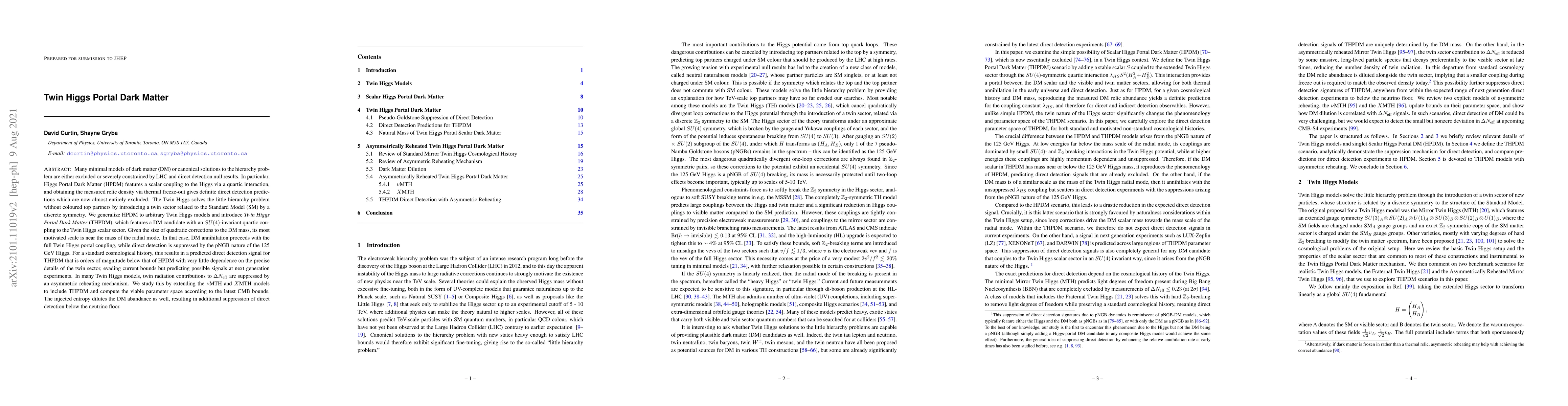 Many minimal models of dark matter (DM) or canonical solutions to the hierarchy problem are either excluded or severely constrained by LHC and direct detection null results. In particular, Higgs Portal Dark Matter (HPDM) features a scalar coupling to the Higgs via a quartic interaction, and obtaining the measured relic density via thermal freeze-out gives definite direct detection predictions which are now almost entirely excluded. The Twin Higgs solves the little hierarchy problem without coloured top partners by introducing a twin sector related to the Standard Model (SM) by a discrete symmetry. We generalize HPDM to arbitrary Twin Higgs models and introduce Twin Higgs Portal Dark Matter (THPDM), which features a DM candidate with an $SU(4)$-invariant quartic coupling to the Twin Higgs scalar sector. Given the size of quadratic corrections to the DM mass, its most motivated scale is near the mass of the radial mode. In that case, DM annihilation proceeds with the full Twin Higgs portal coupling, while direct detection is suppressed by the pNGB nature of the 125 GeV Higgs. For a standard cosmological history, this results in a predicted direct detection signal for THPDM that is orders of magnitude below that of HPDM with very little dependence on the precise details of the twin sector, evading current bounds but predicting possible signals at next generation experiments. In many Twin Higgs models, twin radiation contributions to $\Delta N_\mathrm{eff}$ are suppressed by an asymmetric reheating mechanism. We study this by extending the $\nu$MTH and $X$MTH models to include THPDM and compute the viable parameter space according to the latest CMB bounds. The injected entropy dilutes the DM abundance as well, resulting in additional suppression of direct detection below the neutrino floor.