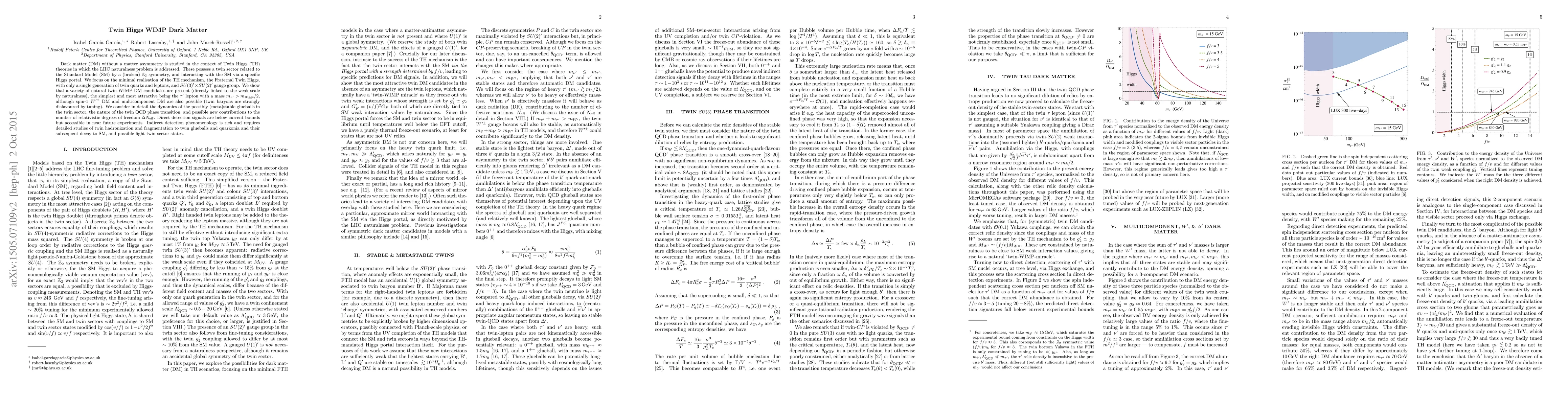 This paper explores dark matter (DM) candidates within Twin Higgs theories, specifically the Fraternal Twin Higgs model, where the Standard Model is mirrored by a twin sector. The study identifies natural twin-WIMP DM candidates, including the $\tau^\prime$ lepton, $W^{\prime\pm}$ bosons, and multicomponent DM, while considering potential indirect detection signals and the dynamics of the twin sector.