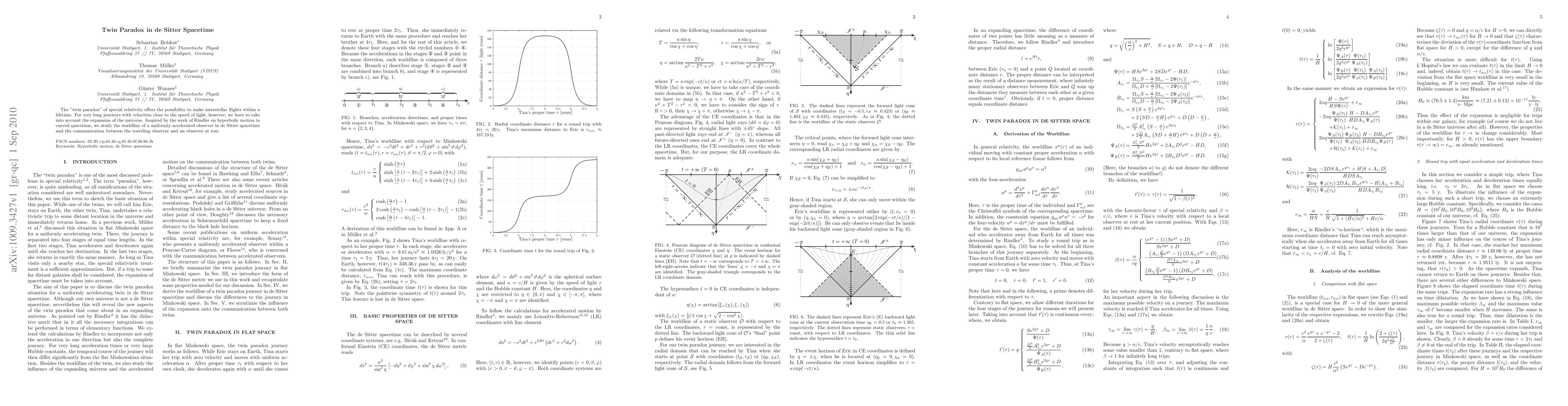 Researchers studied the twin paradox in de Sitter spacetime, a curved space where the universe expands, to explore communication between a traveling observer and an observer at rest.