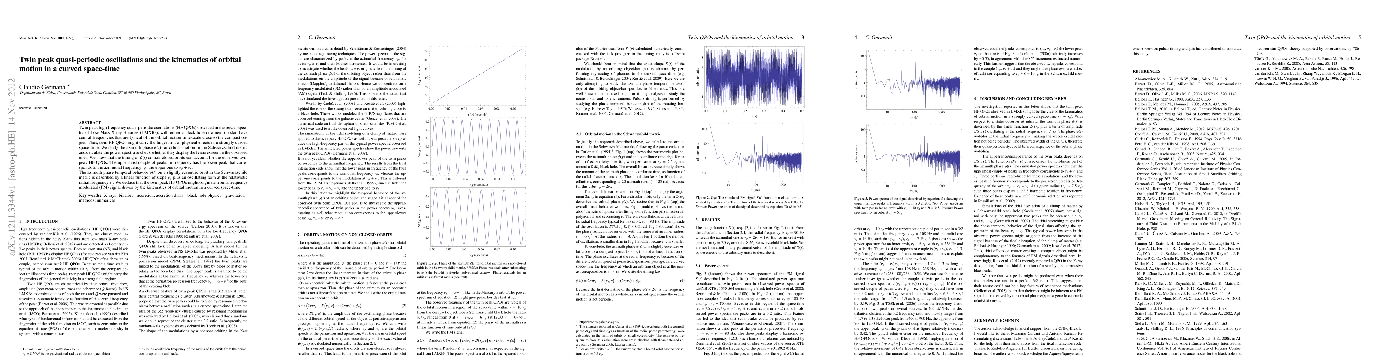 This study investigates twin peak high frequency quasi-periodic oscillations in Low Mass X-ray Binaries and suggests they may arise from a frequency modulated signal driven by orbital motion in curved space-time.