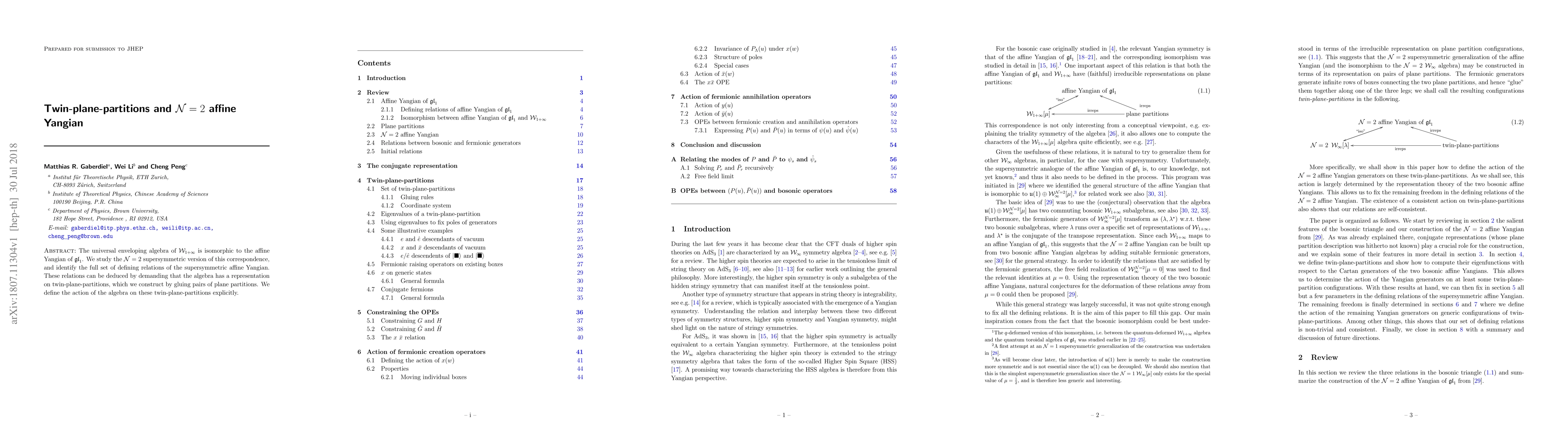 The paper identifies the defining relations for the $\mathcal{N}=2$ supersymmetric affine Yangian, using twin-plane-partitions constructed from pairs of plane partitions, and explicitly defines the algebra's action on these partitions.