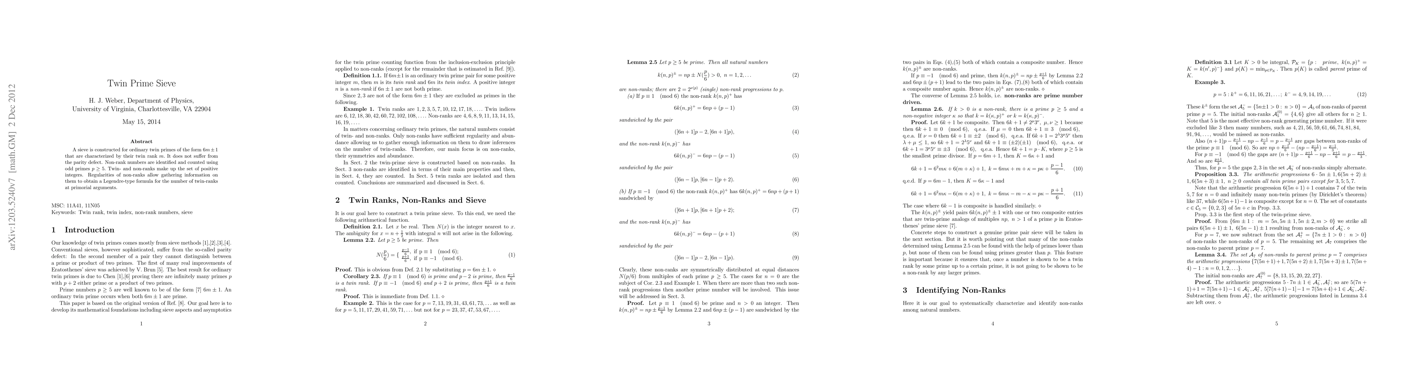 The paper introduces a novel sieve for identifying twin primes of the form 6m±1, free from the parity issue, and provides a method to count non-rank numbers, leading to a Legendre-type formula for the number of twin-ranks near primorial arguments.