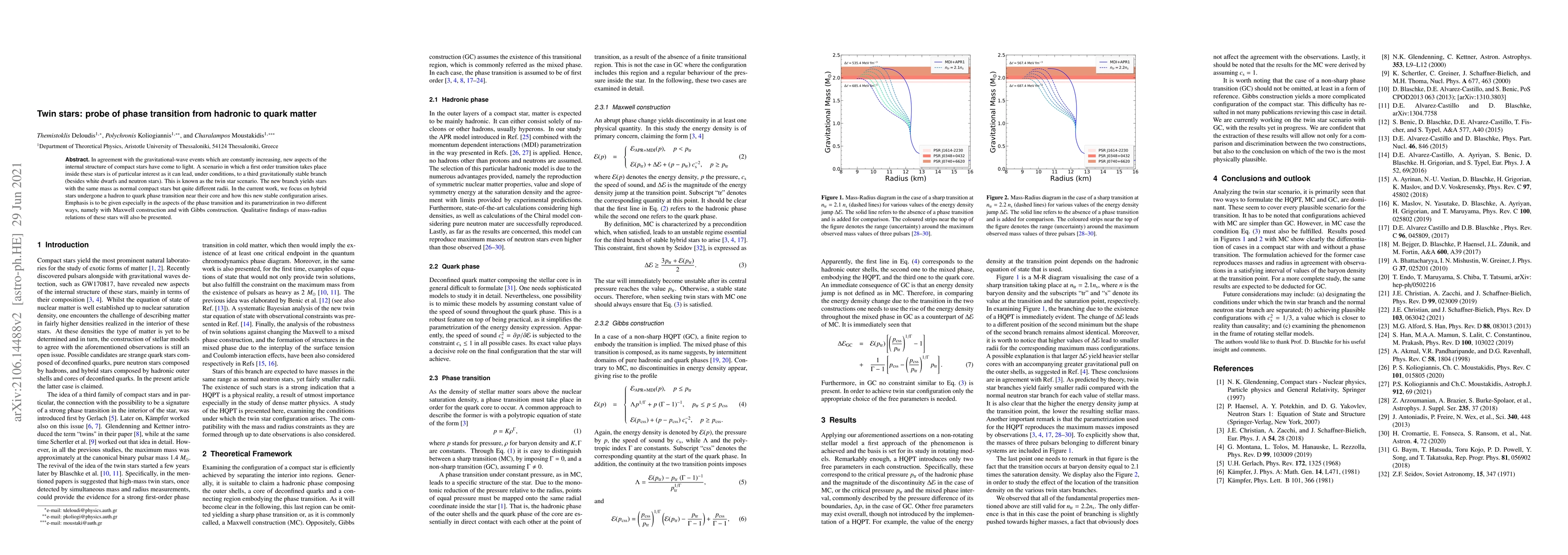 This paper investigates the twin star scenario where compact stars undergo a first-order phase transition from hadronic to quark matter, leading to a new stable branch with identical mass but different radii. The study focuses on the parameterization of this transition using Maxwell and Gibbs constructions, and presents qualitative mass-radius relations for these hybrid stars.