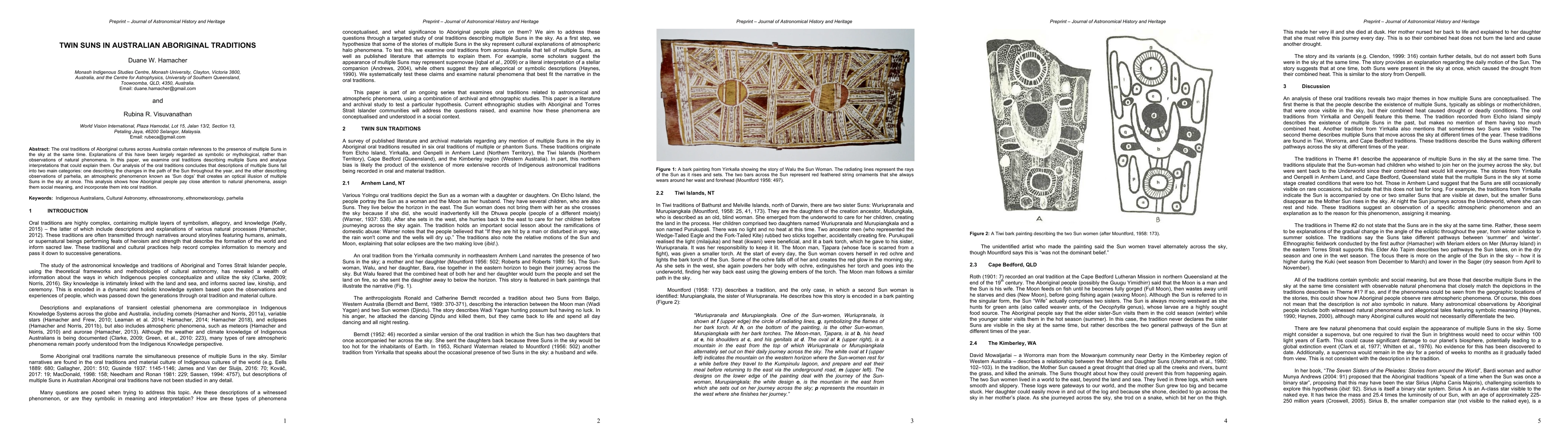 This paper explores Aboriginal Australian oral traditions that reference multiple Suns, finding that these references either describe seasonal changes in the Sun's path or observations of parhelia, known as "Sun dogs." The study highlights Aboriginal people's keen observation of natural phenomena and their integration into cultural narratives.