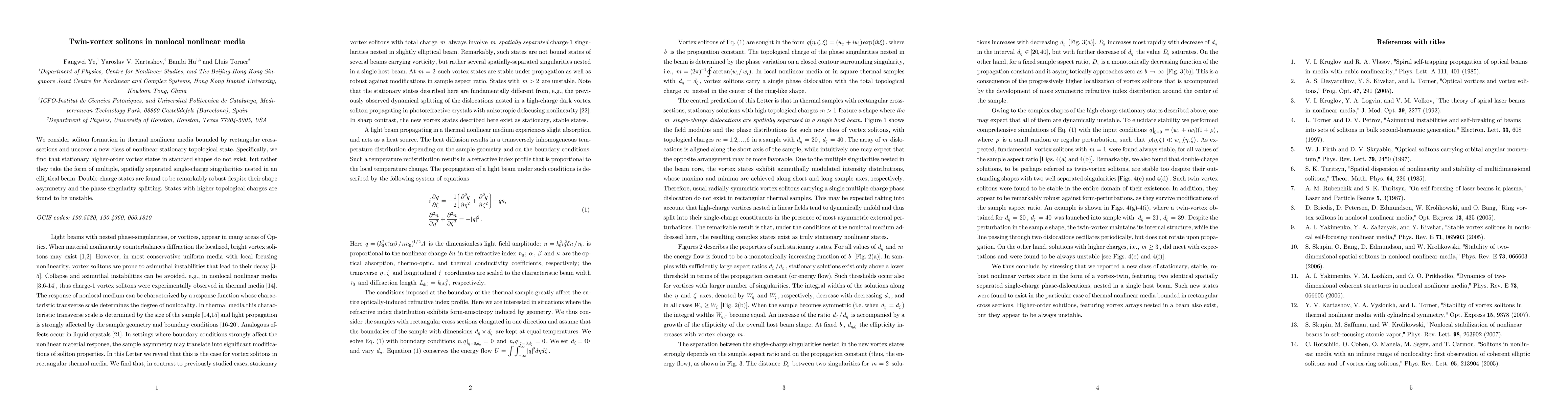 This paper explores soliton formation in thermal nonlinear media, revealing twin-vortex solitons as a new class of topological states. These double-charge states are robust and asymmetrical, while higher-order vortex states are unstable.