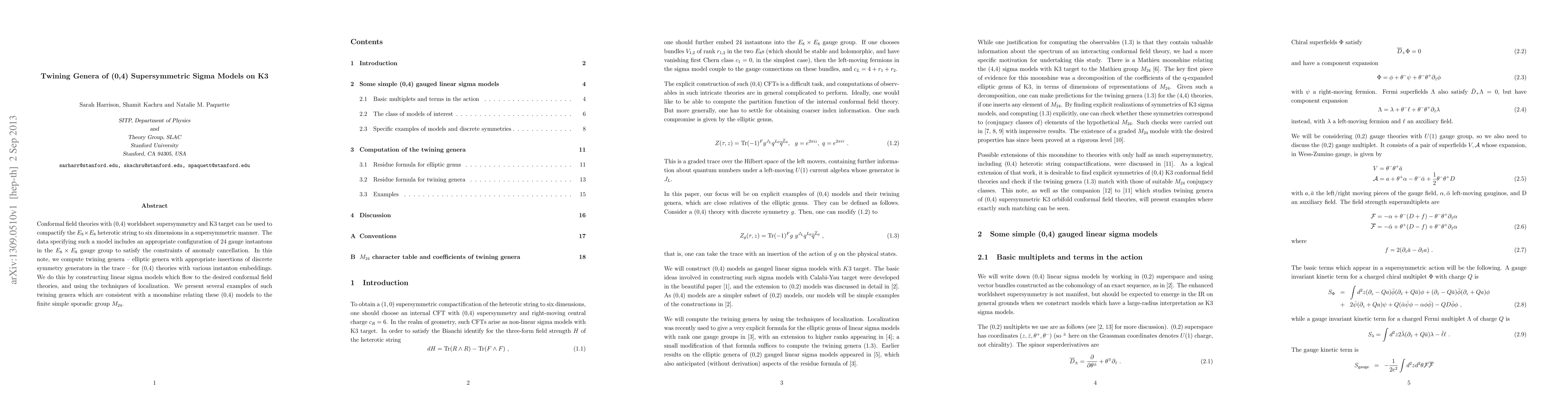 This research computes twining genera for (0,4) supersymmetric sigma models on K3 surfaces, using linear sigma models and localization techniques. The results align with a theoretical connection to the sporadic group M24, highlighting the significance of gauge instantons in these conformal field theories.