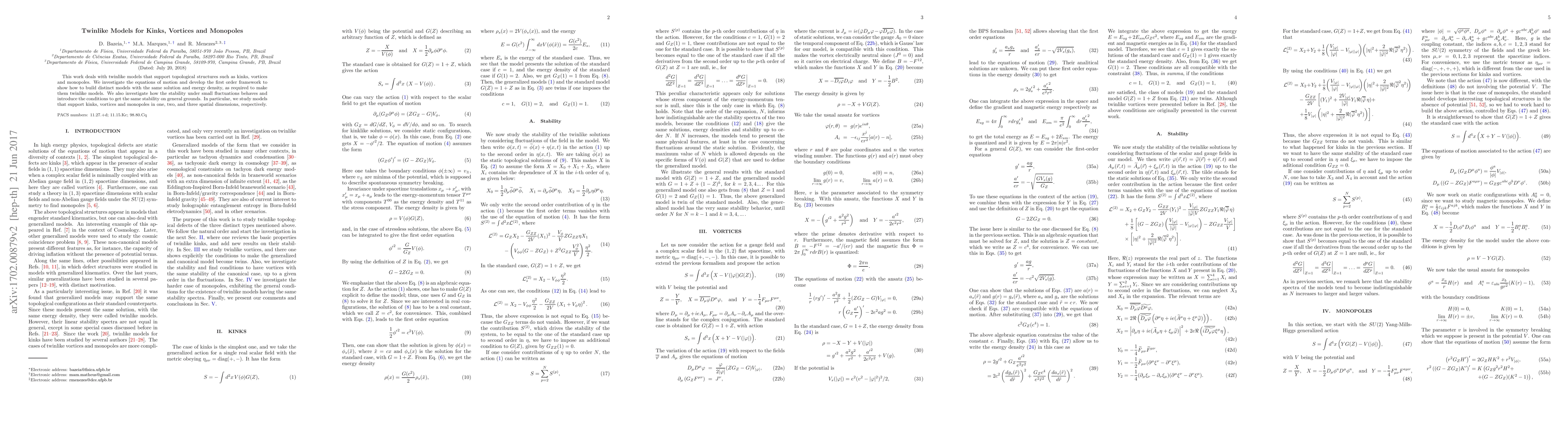 This paper explores twinlike models supporting topological structures like kinks, vortices, and monopoles, developing a first-order framework to create distinct models with identical solutions and energy densities. It also examines stability under small fluctuations and provides conditions for maintaining stability across different spatial dimensions.