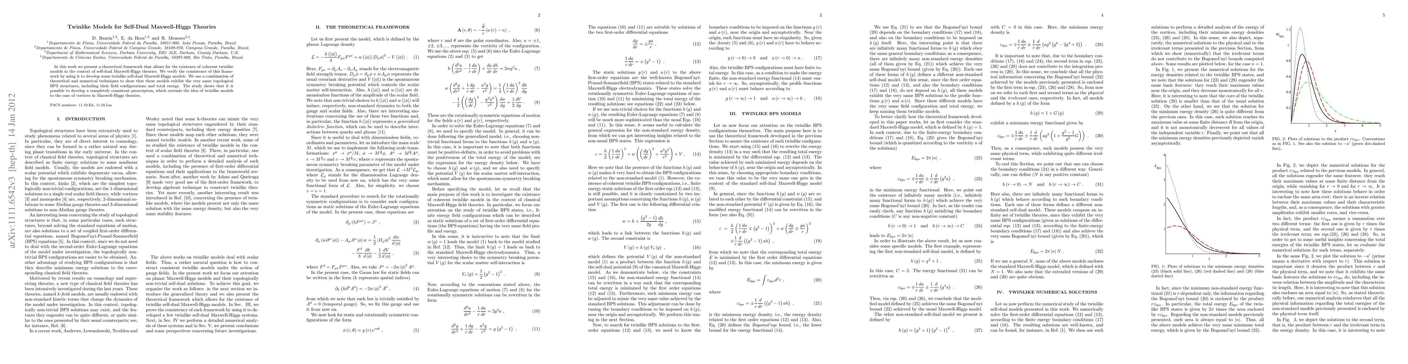 A modified Maxwell-Higgs model with non-trivial functions h(|φ|) and w(|φ|) was used to investigate twin-like self-dual classical field theories.