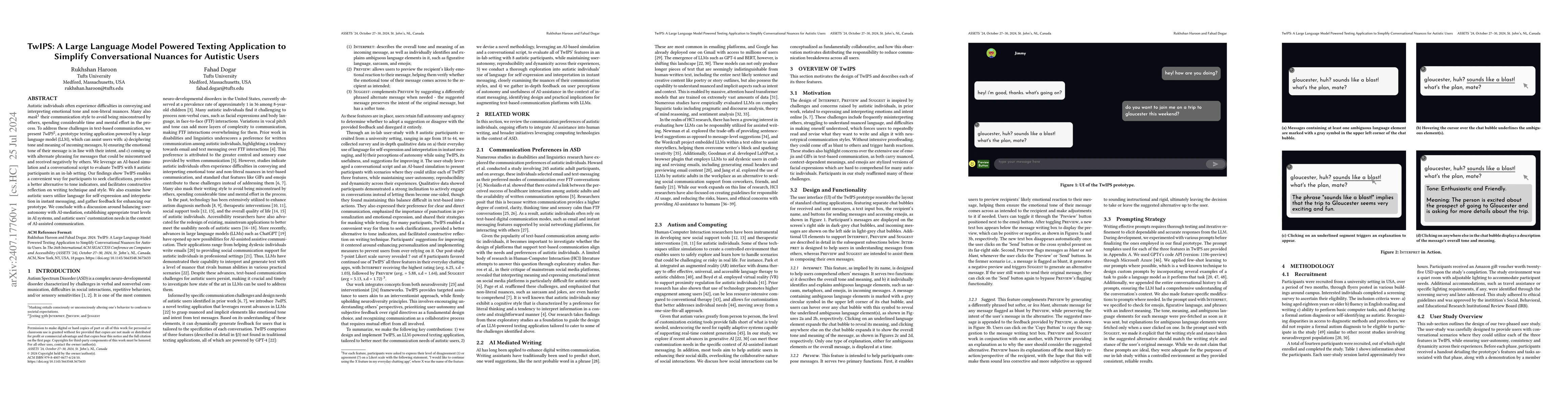 TwIPS, a LLM-powered texting app, aids autistic users in text communication by helping them interpret tone, match emotional intent, and rephrase messages. Initial evaluations indicate it facilitates clearer interactions and provides constructive feedback, though further exploration is needed regarding user autonomy and trust in AI mediation.