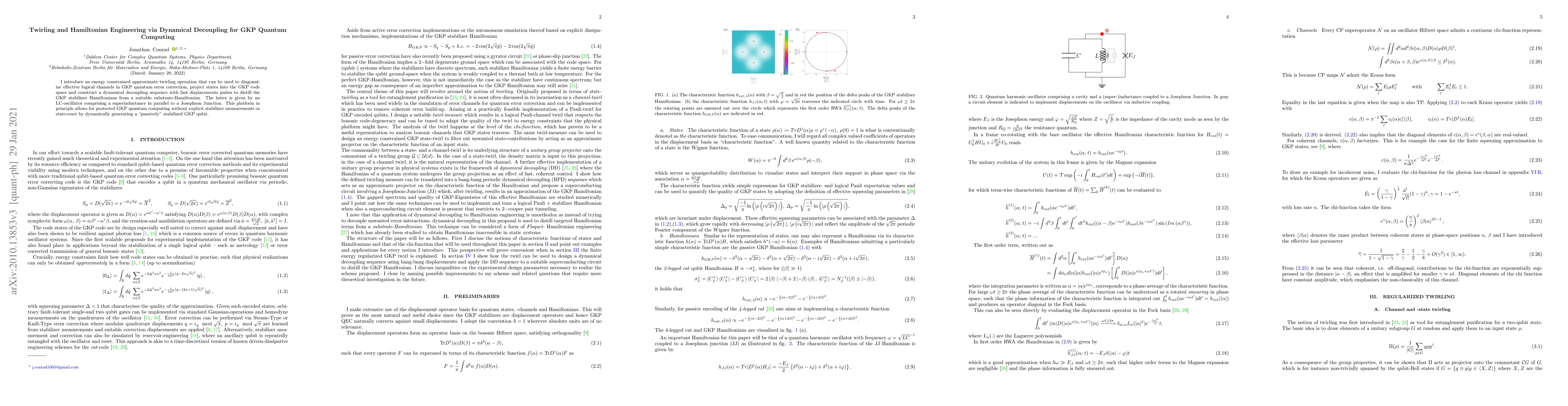 I introduce an energy constrained approximate twirling operation that can be used to diagonalize effective logical channels in GKP quantum error correction, project states into the GKP code space and construct a dynamical decoupling sequence with fast displacements pulses to distill the GKP stabilizer Hamiltonians from a suitable substrate-Hamiltonian. The latter is given by an LC-oscillator comprising a superinductance in parallel to a Josephson Junction. This platform in principle allows for protected GKP quantum computing without explicit stabilizer measurements or state-reset by dynamically generating a `passively' stabilized GKP qubit.