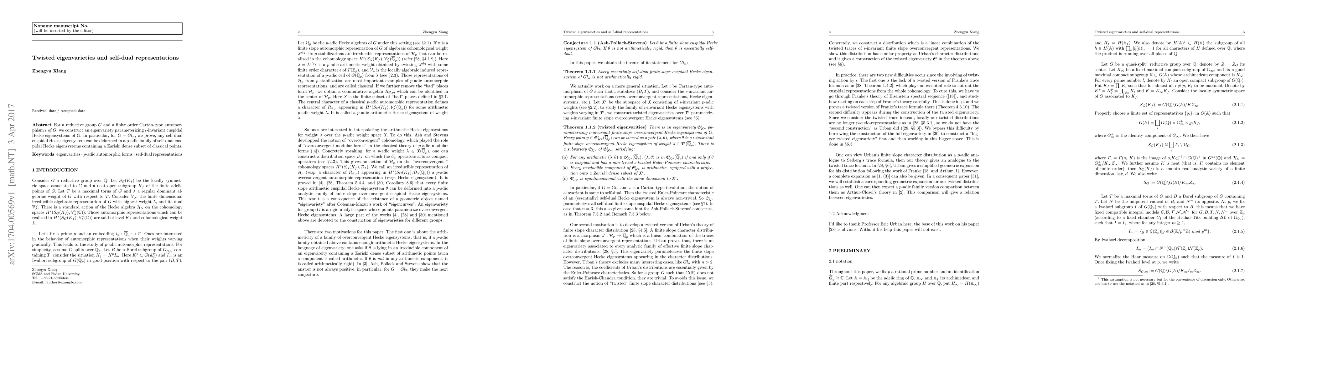 For a reductive group G and a finite order Cartan-type automorphism \iota of G, we construct an eigenvariety parameterizing \iota-invariant cuspidal Hecke eigensystems of G. In particular, for G = Gln, we prove, any self-dual cuspidal Hecke eigensystem can be deformed in a p-adic family of self-dual cuspidal Hecke eigensystems containing a Zariski dense subset of classical points.