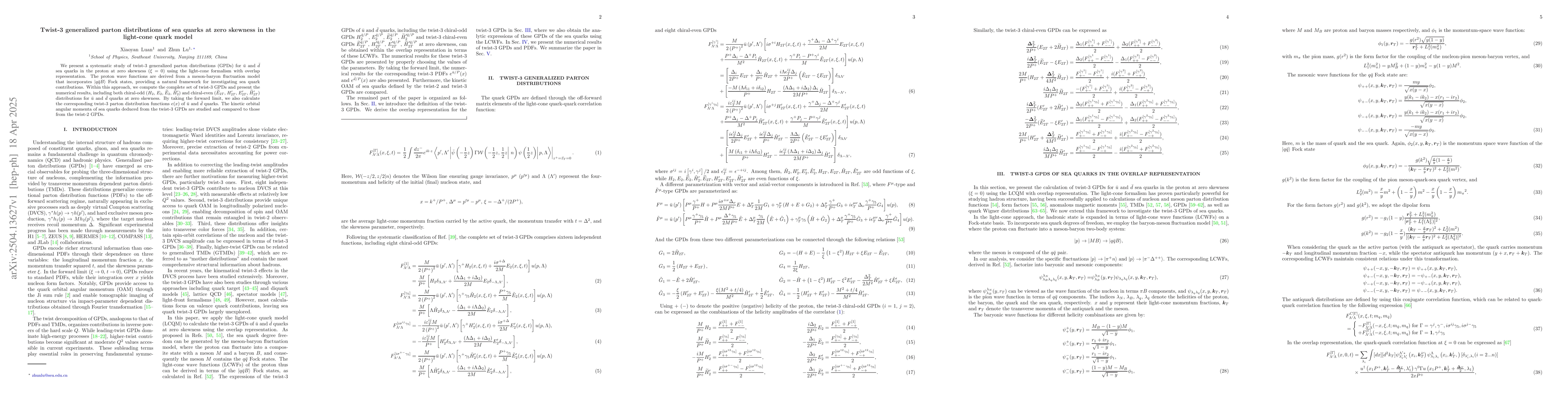 The paper presents a systematic study of twist-3 GPDs for sea quarks at zero skewness using the light-cone quark model, providing analytic expressions and numerical results for various chiral-odd and chiral-even distributions.