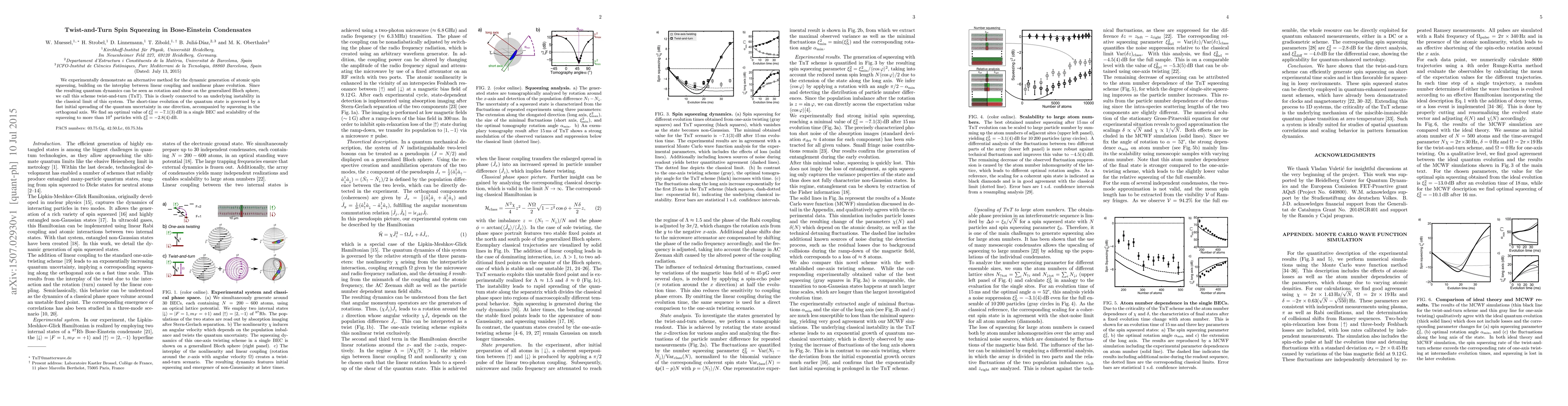 This paper demonstrates an innovative method for generating atomic spin squeezing in Bose-Einstein condensates through twist-and-turn dynamics, achieving optimal squeezing of -7.1(3) dB in a single condensate and scalability to over 10^4 particles with -2.8(4) dB.