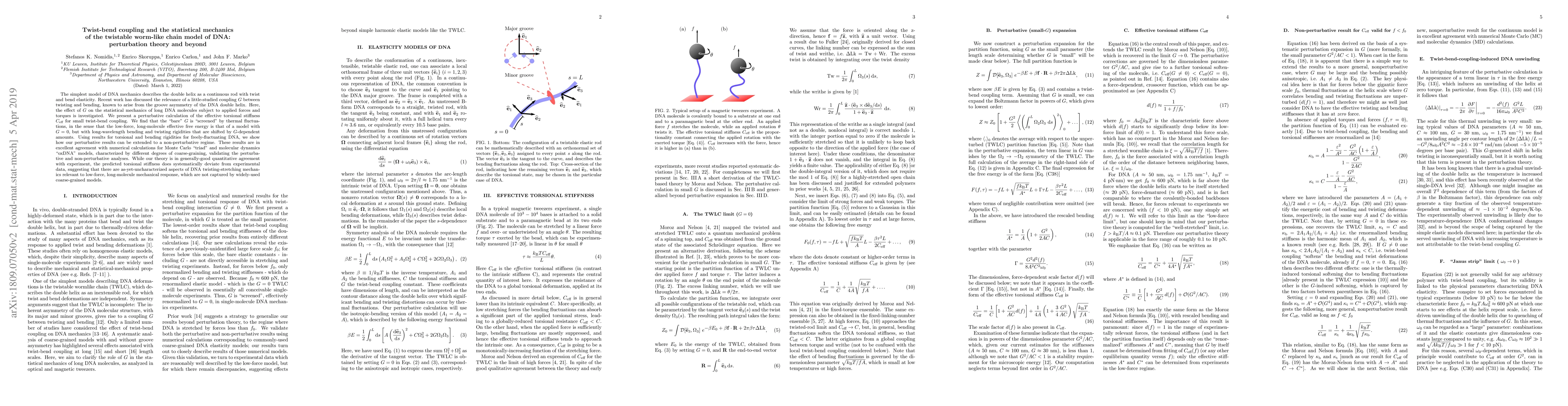 The study investigates the twist-bend coupling $G$ in DNA mechanics, revealing its screened effect by thermal fluctuations through perturbative calculations. The results, in agreement with numerical simulations, suggest discrepancies between theoretical predictions and experimental torsional stiffness, hinting at unaccounted mechanics in current DNA models.