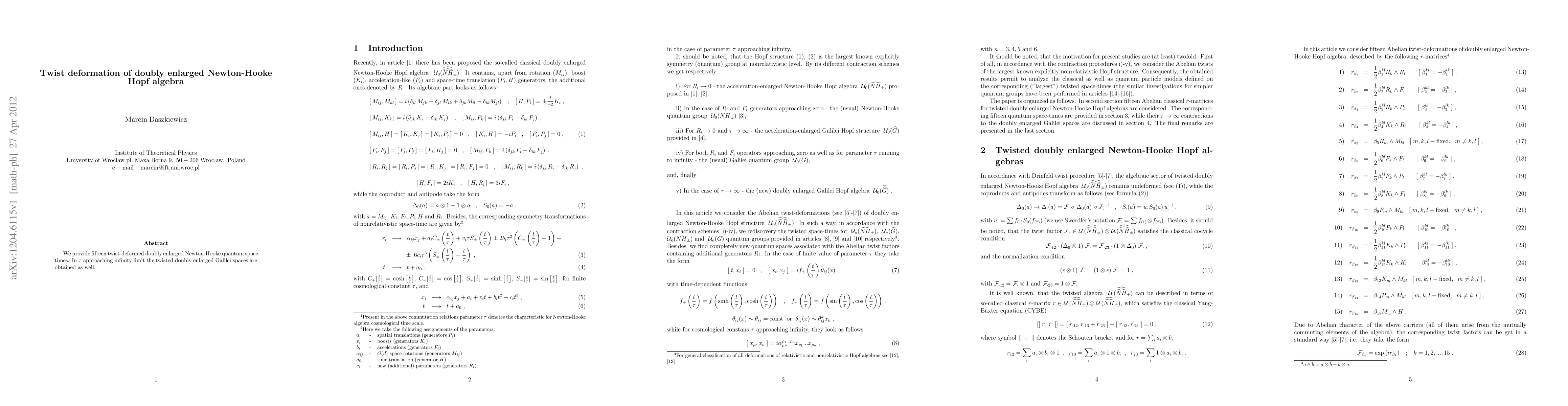We provide fifteen twist-deformed doubly enlarged Newton-Hooke quantum space-times. In $\tau$ approaching infinity limit the twisted doubly enlarged Galilei spaces are obtained as well.