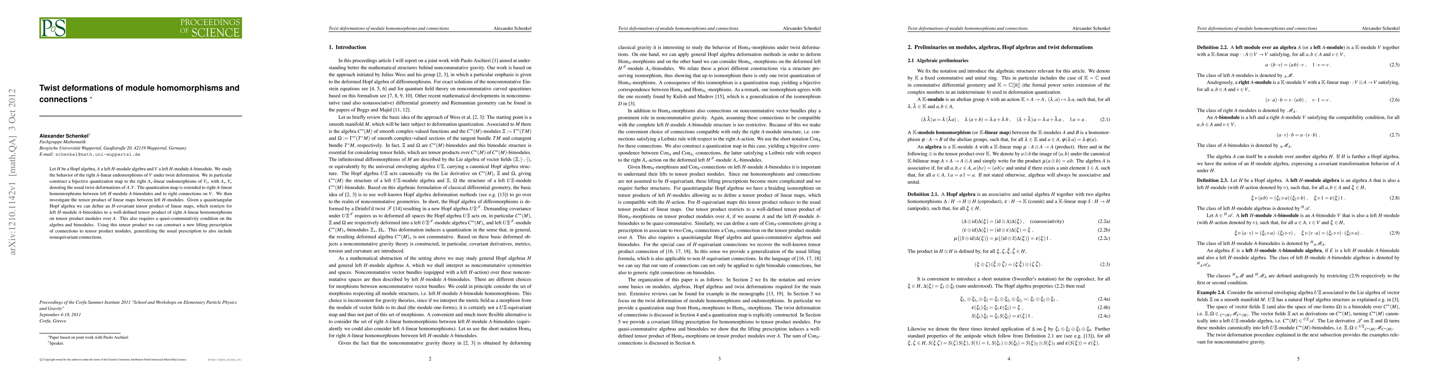 This paper studies twist deformations of module homomorphisms in the context of Hopf algebras, constructing a bijective quantization map for twisted deformations and extending it to connections. It introduces an H-covariant tensor product for linear maps between modules, generalizing the usual lifting prescription to include nonequivariant connections.