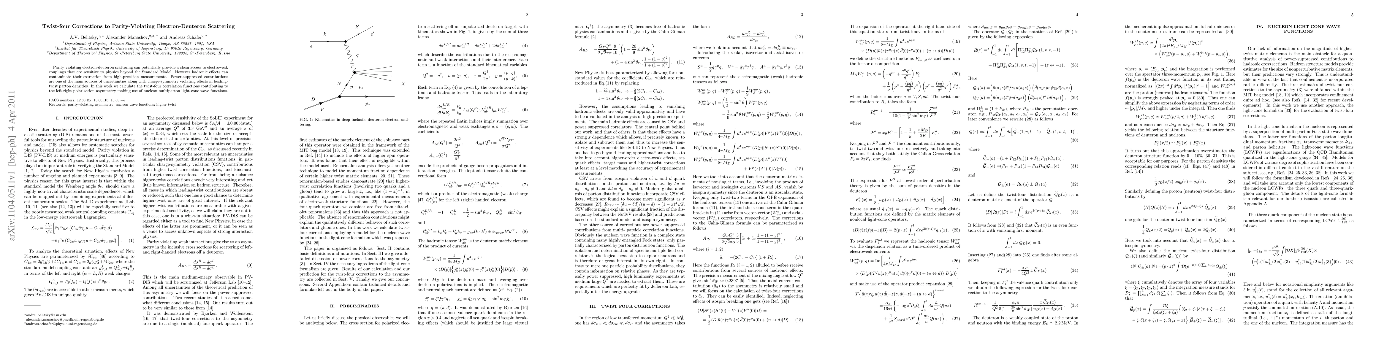 This paper calculates twist-four corrections to parity-violating electron-deuteron scattering, aiming to improve the extraction of electroweak couplings and reduce uncertainties from hadronic effects. It employs nucleon multiparton light-cone wave functions to address power-suppressed contributions.