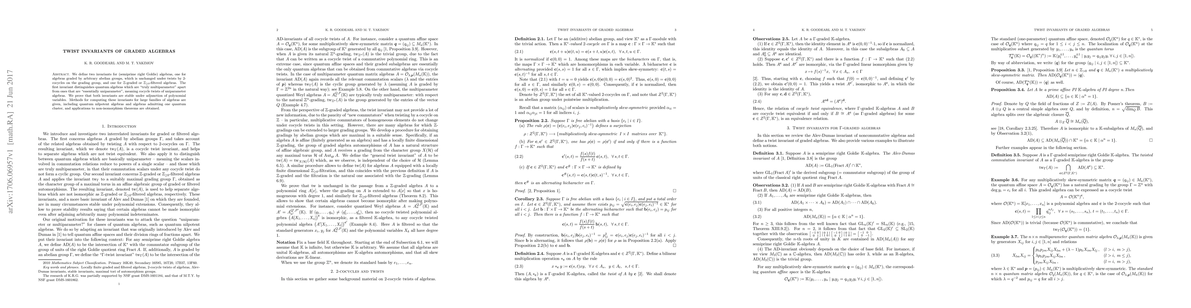 We define two invariants for (semiprime right Goldie) algebras, one for algebras graded by arbitrary abelian groups, which is unchanged under twists by $2$-cocycles on the grading group, and one for $\mathbb Z$-graded or $\mathbb Z_{\ge 0}$-filtered algebras. The first invariant distinguishes quantum algebras which are "truly multiparameter" apart from ones that are "essentially uniparameter", meaning cocycle twists of uniparameter algebras. We prove that both invariants are stable under adjunction of polynomial variables. Methods for computing these invariants for large families of algebras are given, including quantum nilpotent algebras and algebras admitting one quantum cluster, and applications to non-isomorphism theorems are obtained.