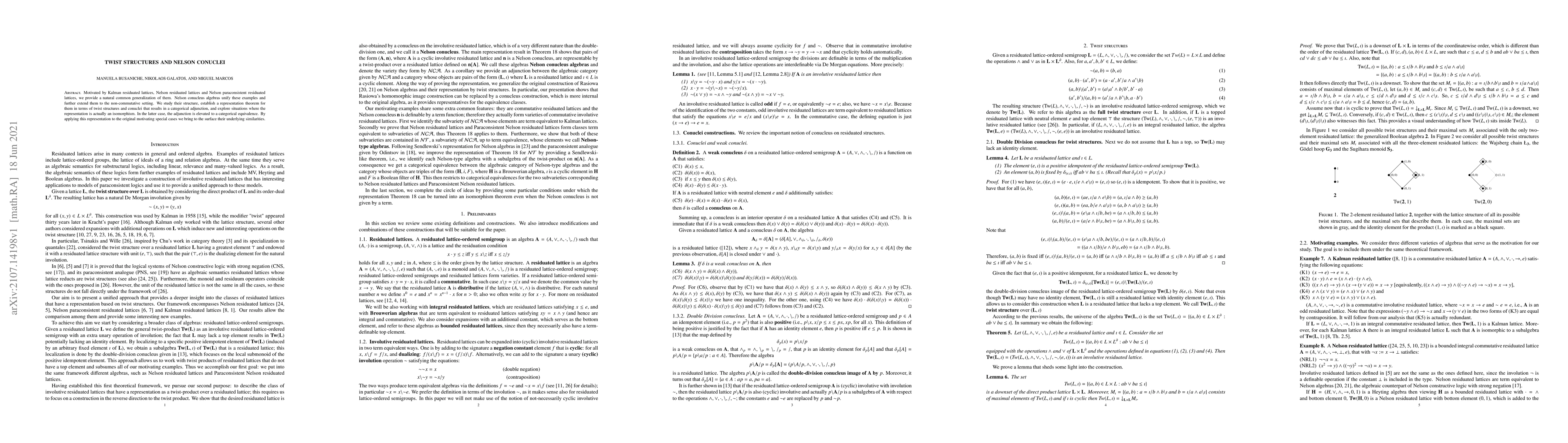 This paper generalizes Kalman, Nelson, and Nelson paraconsistent residuated lattices through the introduction of Nelson conucleus algebras, which extend to a non-commutative setting. It establishes a representation theorem linking these algebras to twist structures and conuclei, revealing underlying similarities in the motivating special cases.