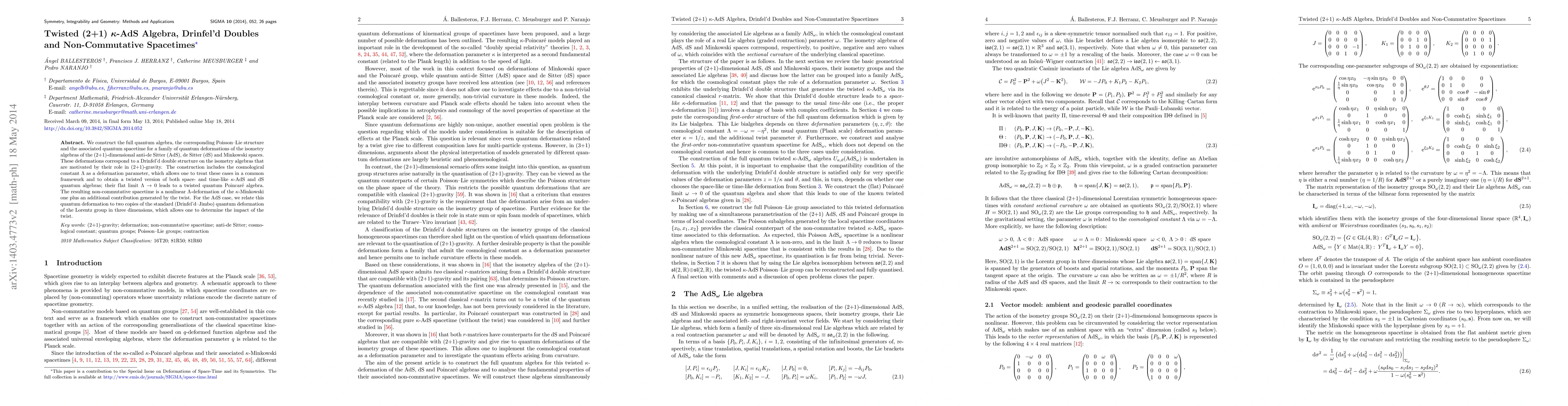 This paper constructs quantum deformations of (2+1)-dimensional AdS, dS, and Minkowski spacetimes, revealing a Drinfel'd double structure and a twisted $\kappa$-AdS algebra. The resulting non-commutative spacetime includes a $\Lambda$-deformation of $\kappa$-Minkowski with an additional twist contribution.