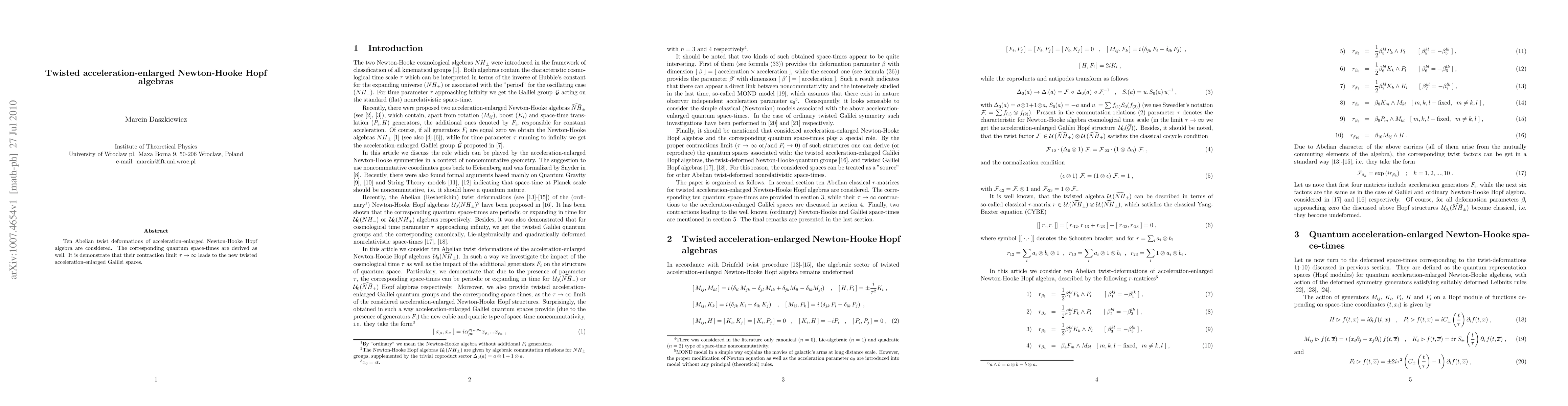 This paper explores ten Abelian twist deformations of acceleration-enlarged Newton-Hooke Hopf algebras and derives their corresponding quantum space-times. The study shows that taking the contraction limit $\tau \to \infty$ results in new twisted acceleration-enlarged Galilei spaces.