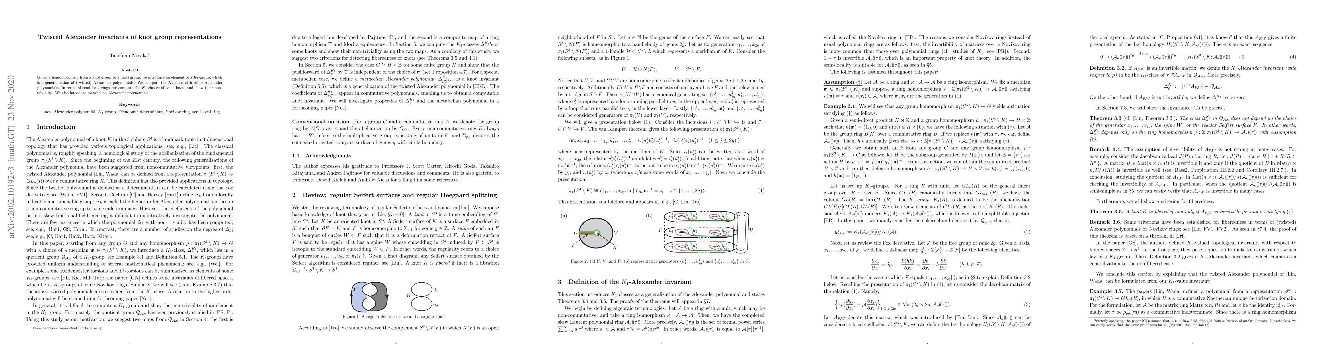 This paper introduces a $K_1$-group element generalizing twisted Alexander polynomials for knot group representations and compares it with traditional Alexander polynomials. It computes $K_1$-classes for specific knots using semi-local rings and demonstrates their non-triviality, alongside introducing metabelian Alexander polynomials.