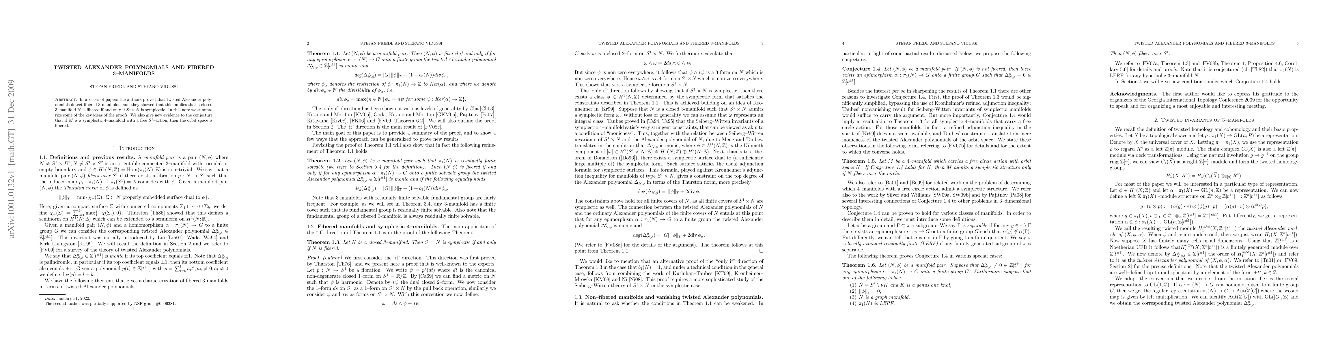 In a series of papers the authors proved that twisted Alexander polynomials detect fibered 3-manifolds, and they showed that this implies that a closed 3-manifold N is fibered if and only if S^1 x N is symplectic. In this note we summarize some of the key ideas of the proofs. We also give new evidence to the conjecture that if $ is a symplectic 4-manifold with a free S^1-action, then the orbit space is fibered.