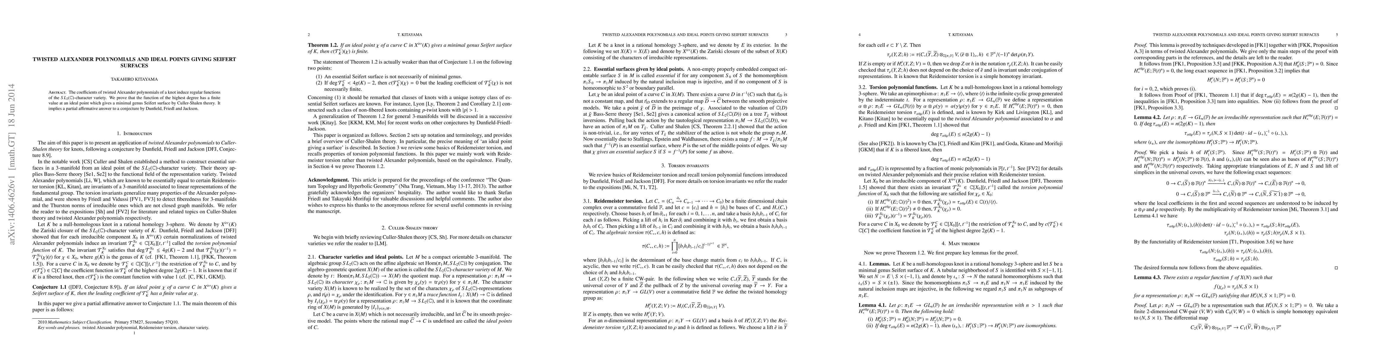 This paper demonstrates that the highest degree coefficient of twisted Alexander polynomials for a knot yields a finite value at ideal points that correspond to minimal genus Seifert surfaces, thereby supporting a conjecture by Dunfield, Friedl, and Jackson regarding Seifert surfaces.