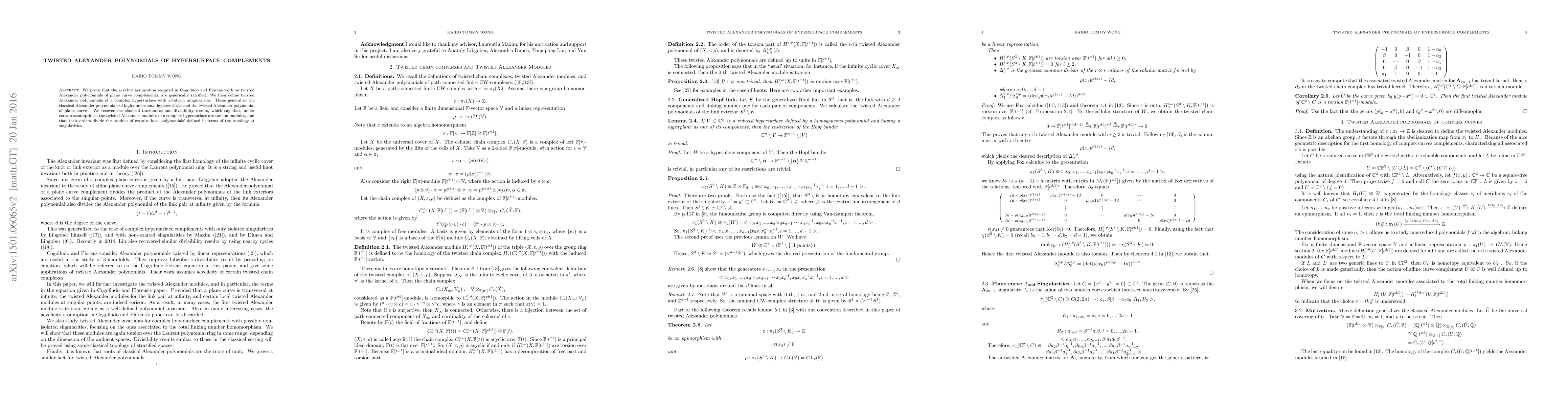 This paper introduces twisted Alexander polynomials for complex hypersurfaces with singularities, generalizing classical Alexander polynomials. It proves that these twisted Alexander modules are torsion and their orders divide products of local polynomials defined around singularities.