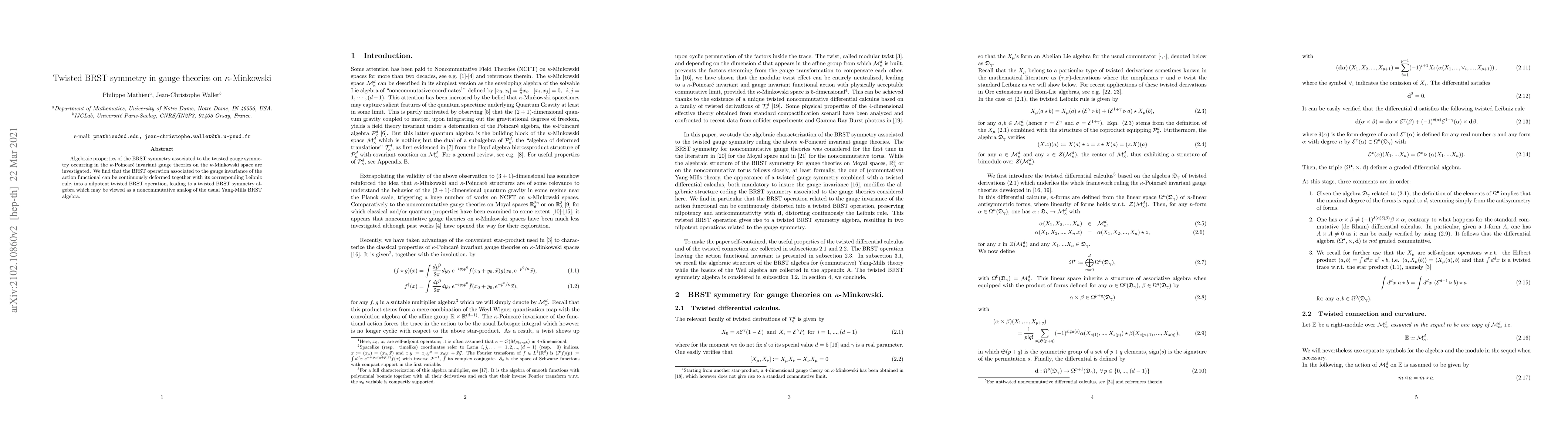 The paper explores the algebraic structure of BRST symmetry in $\kappa$-Minkowski space, revealing a twisted BRST symmetry that continuously deforms the standard BRST operation, establishing a noncommutative analog to the classical Yang-Mills BRST algebra.
